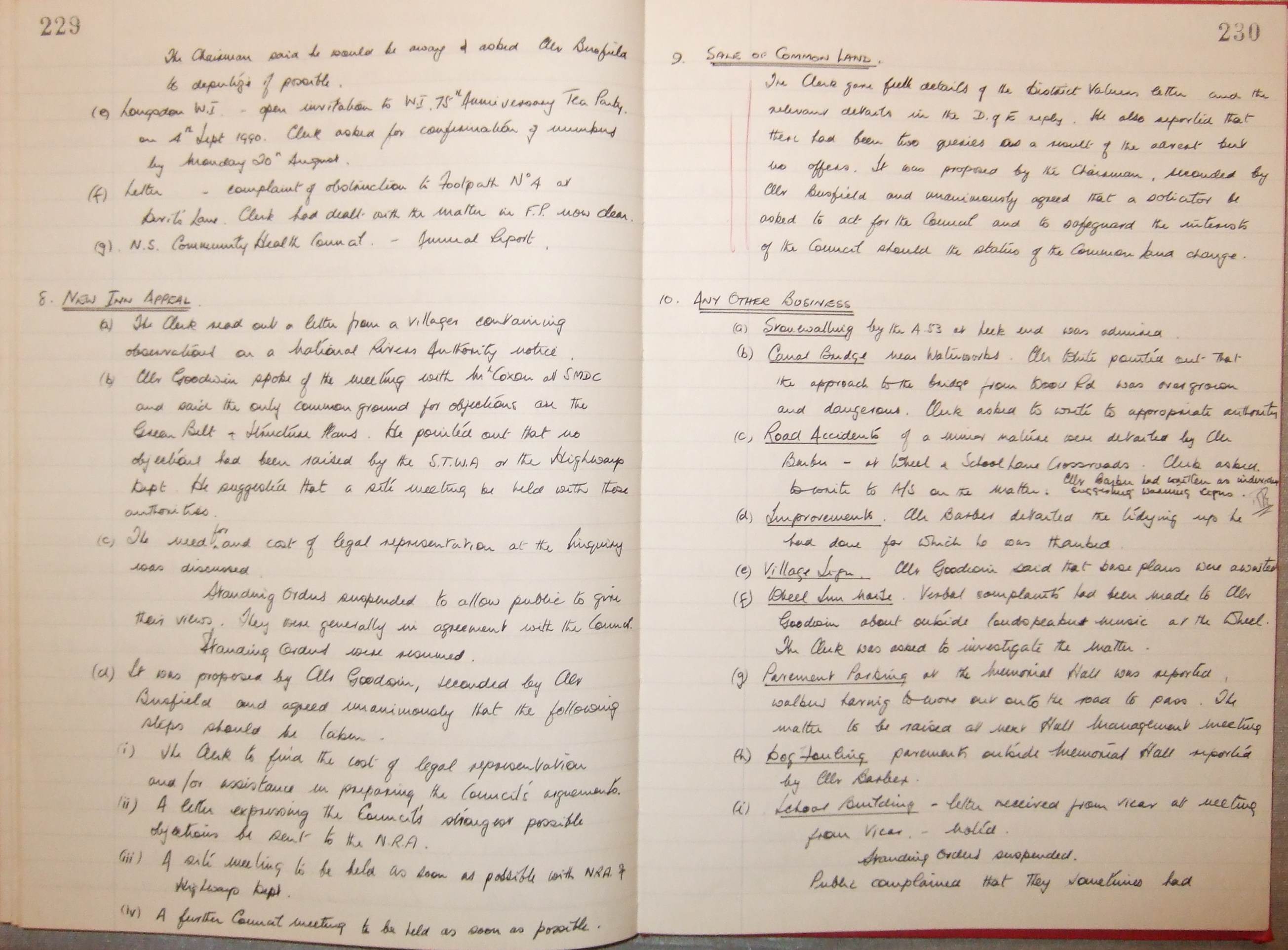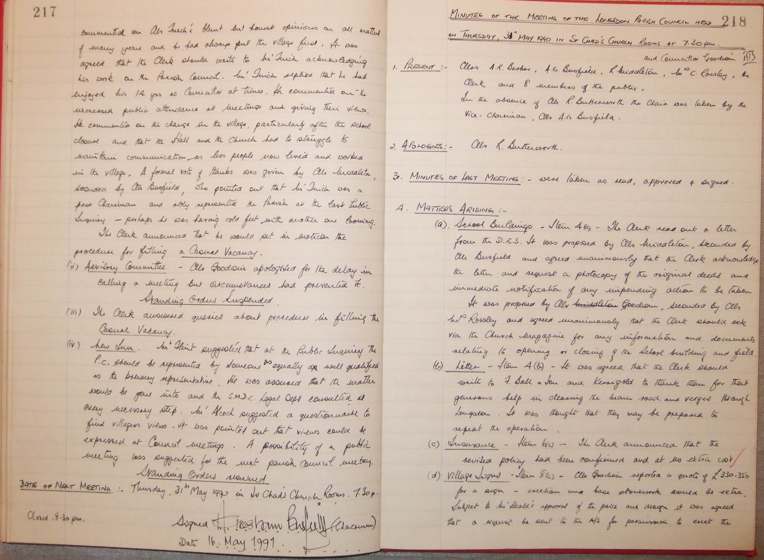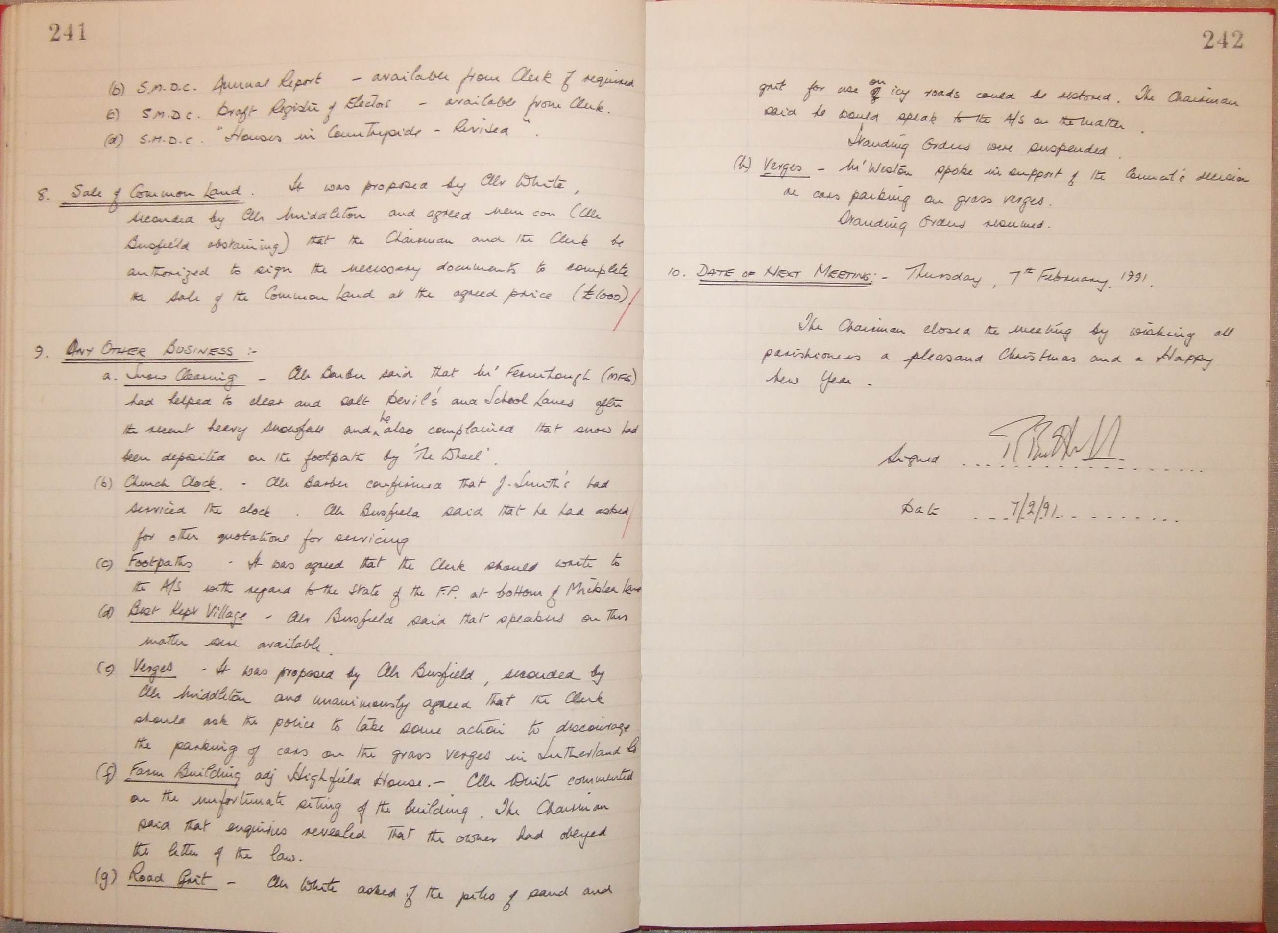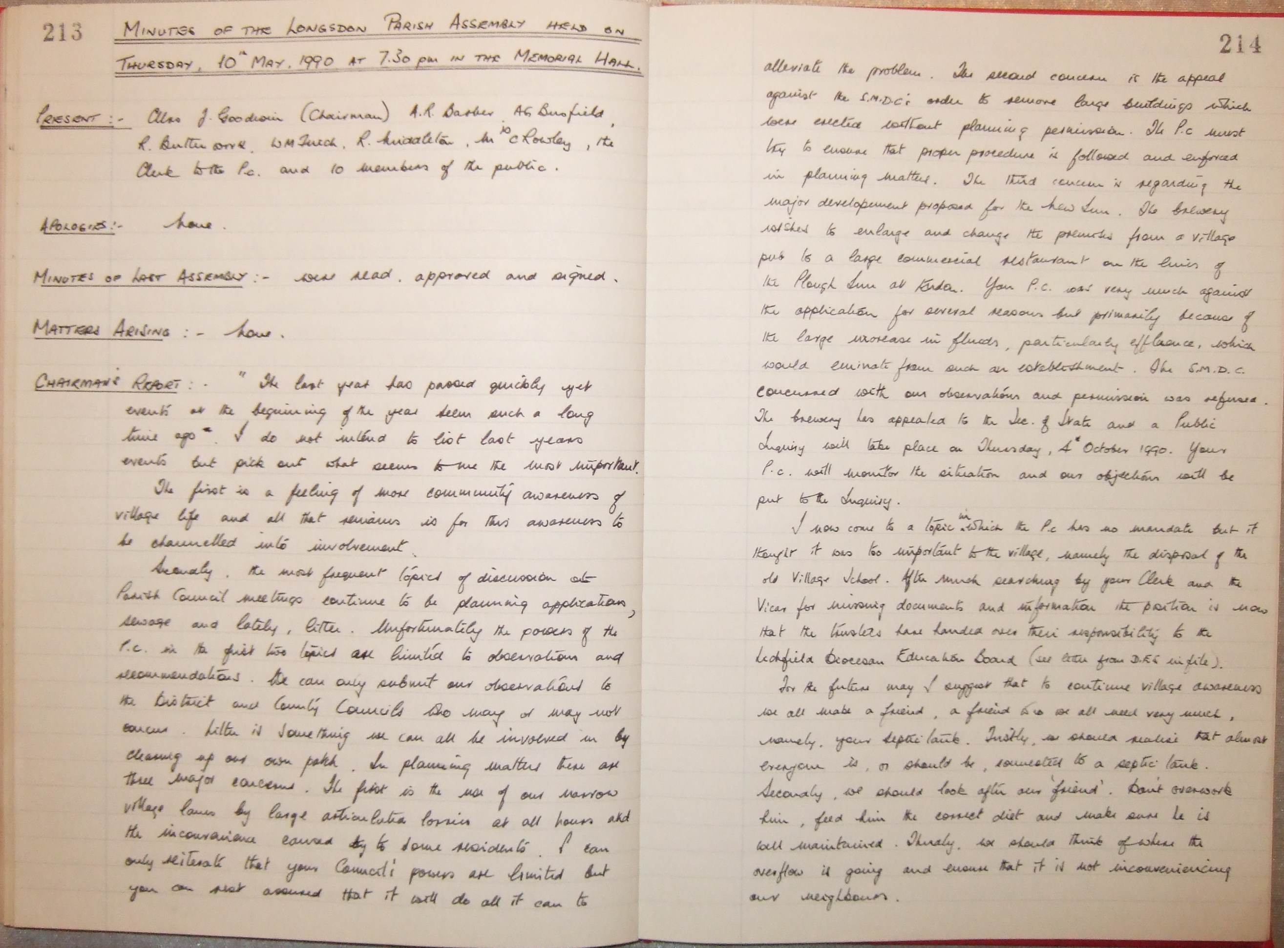Photographs of pages from the Parish Council Minute book for meetings from 1990.