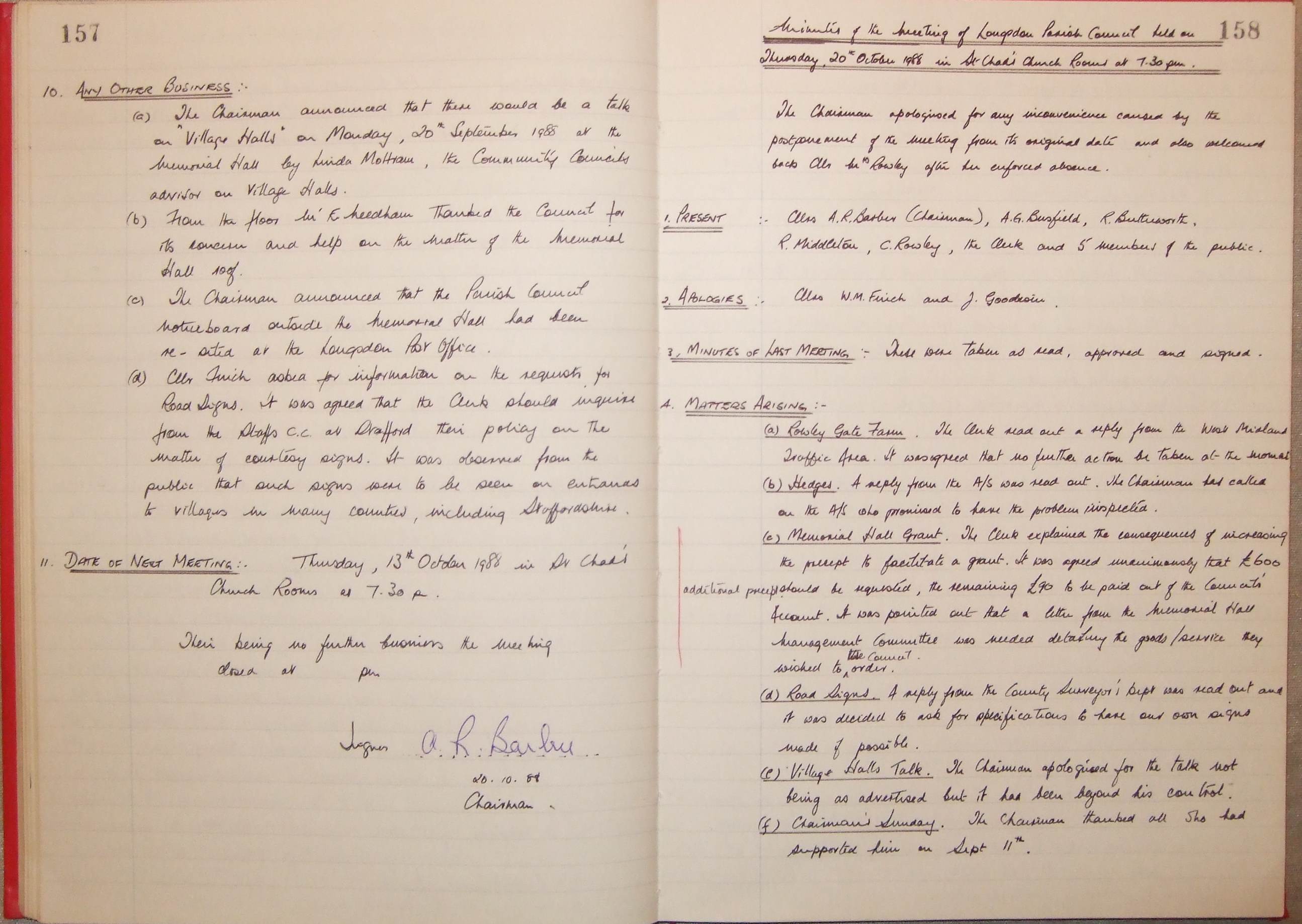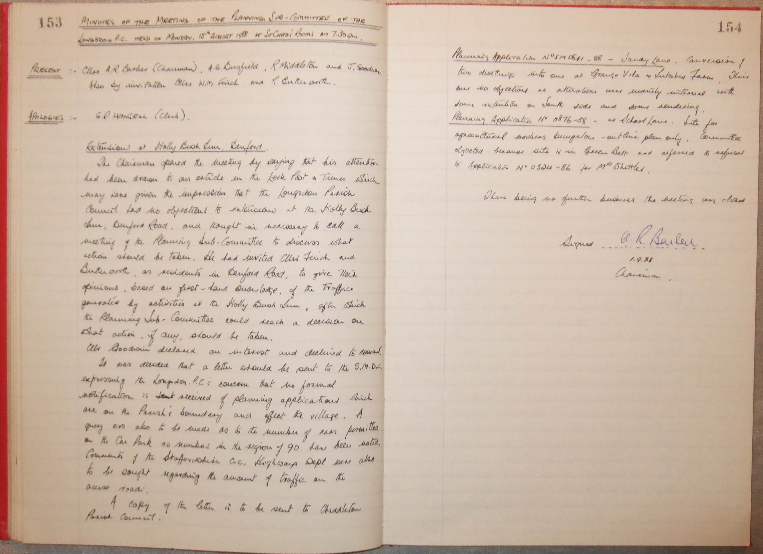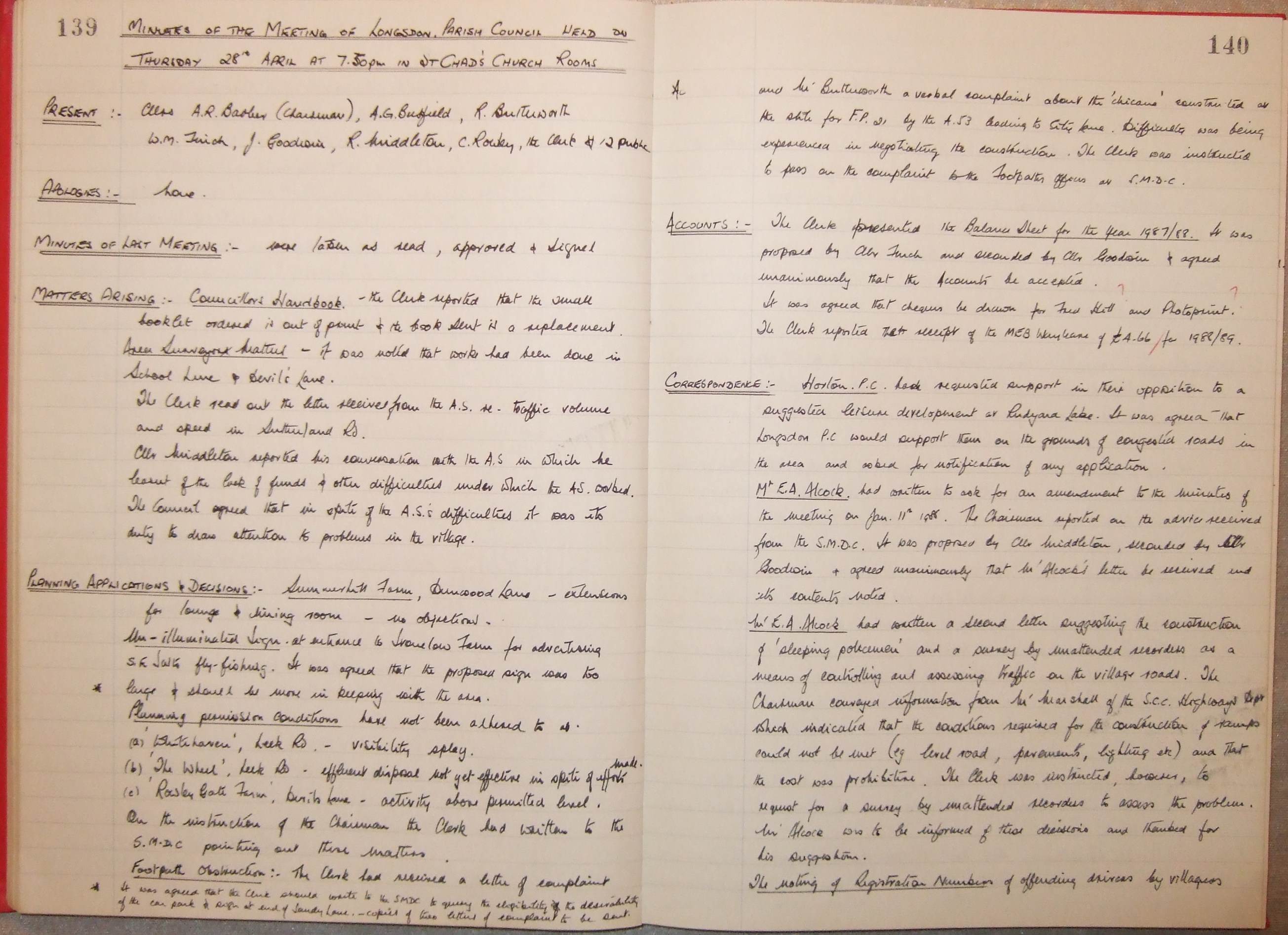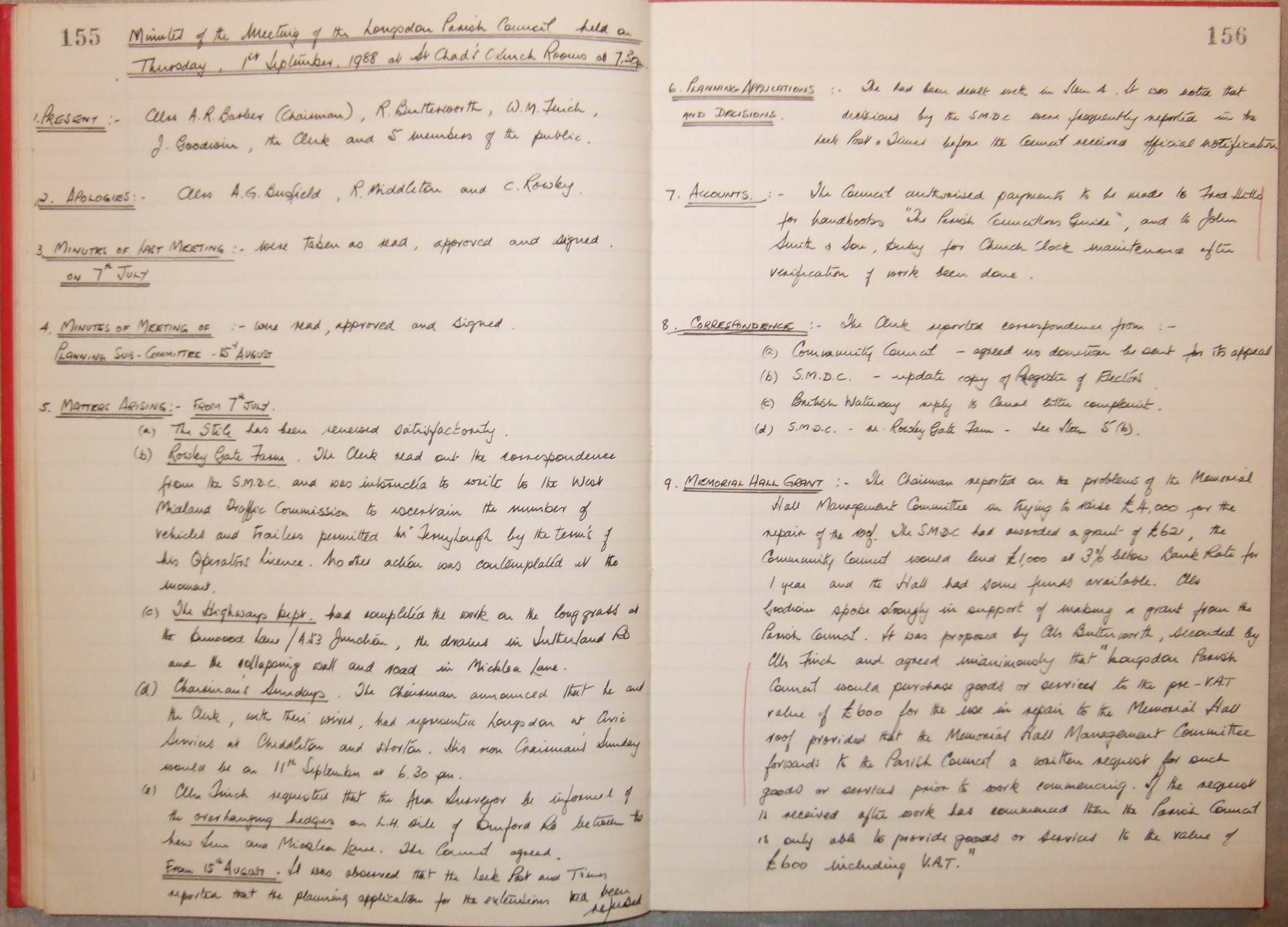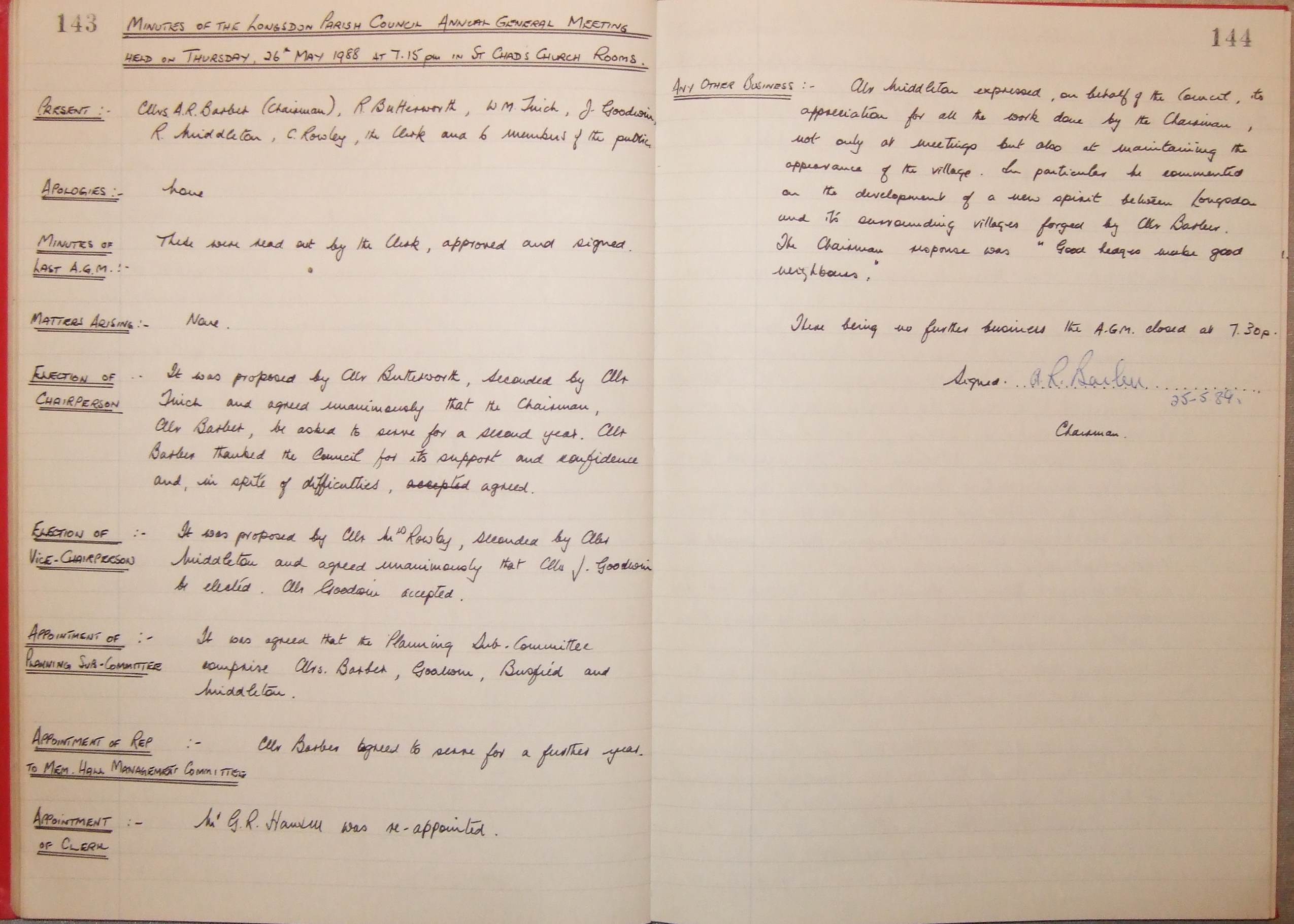 Photographs of pages from the Parish Council Minute book for meetings from 1988.