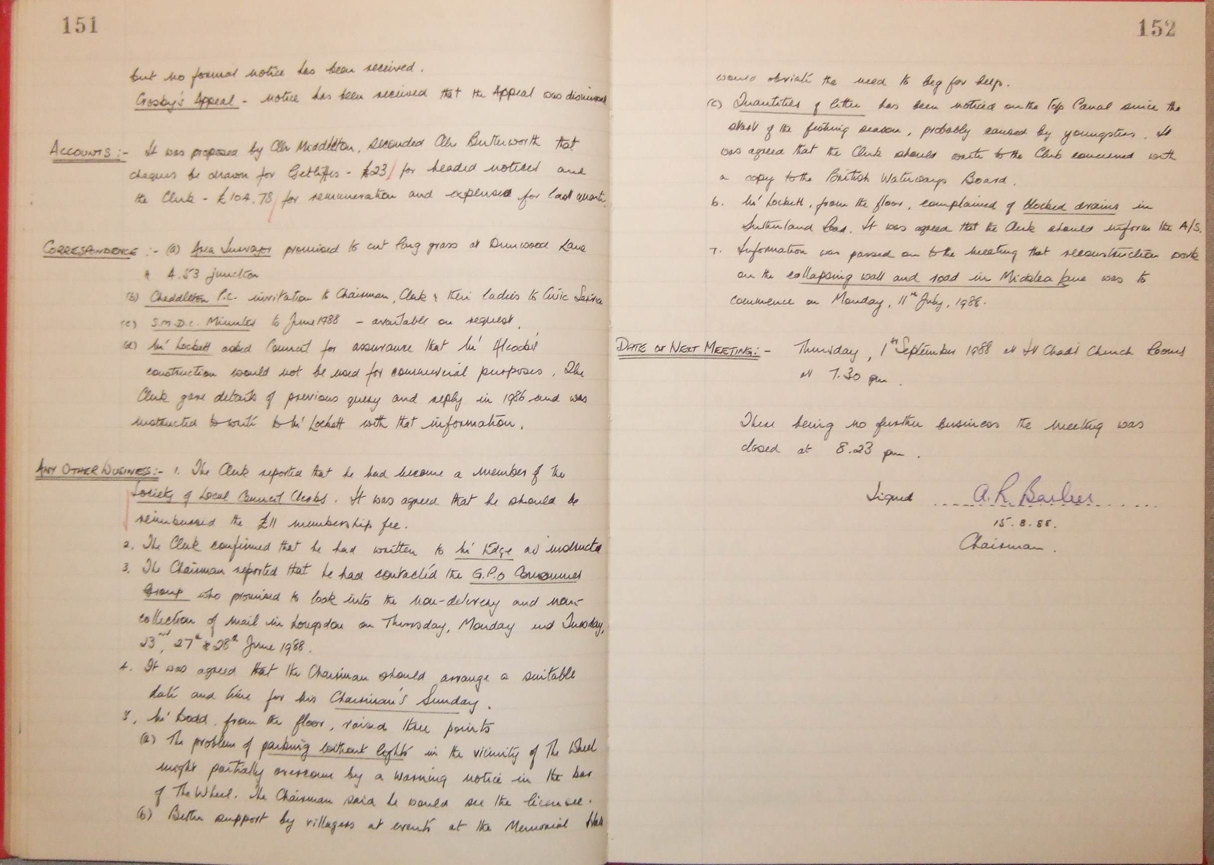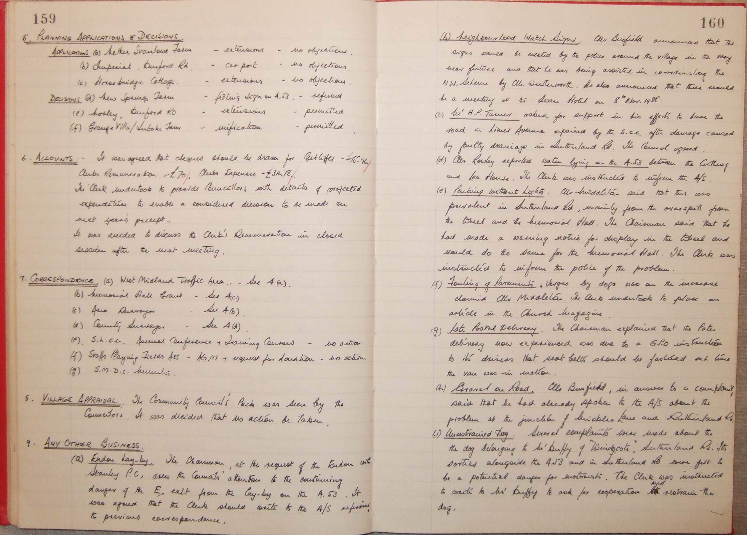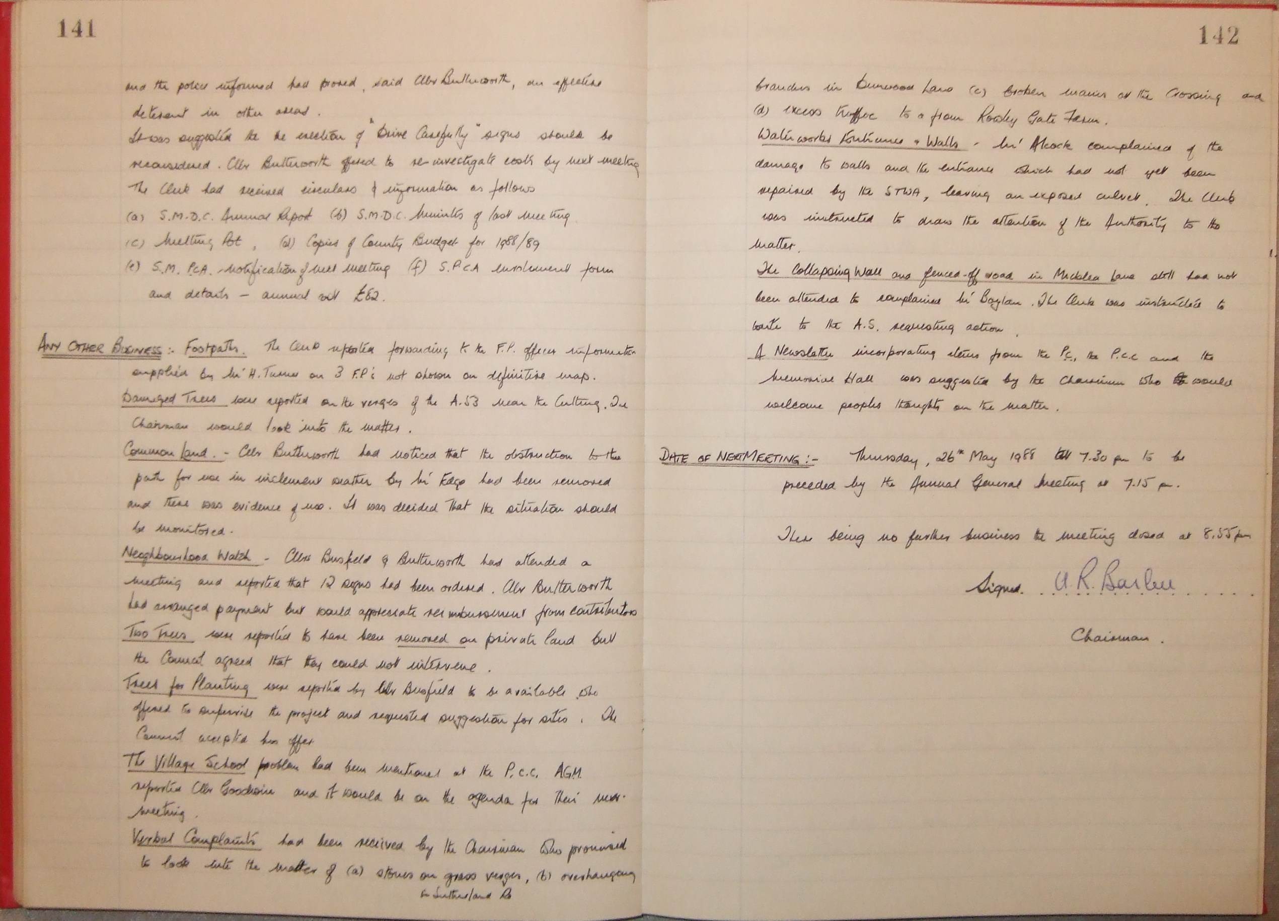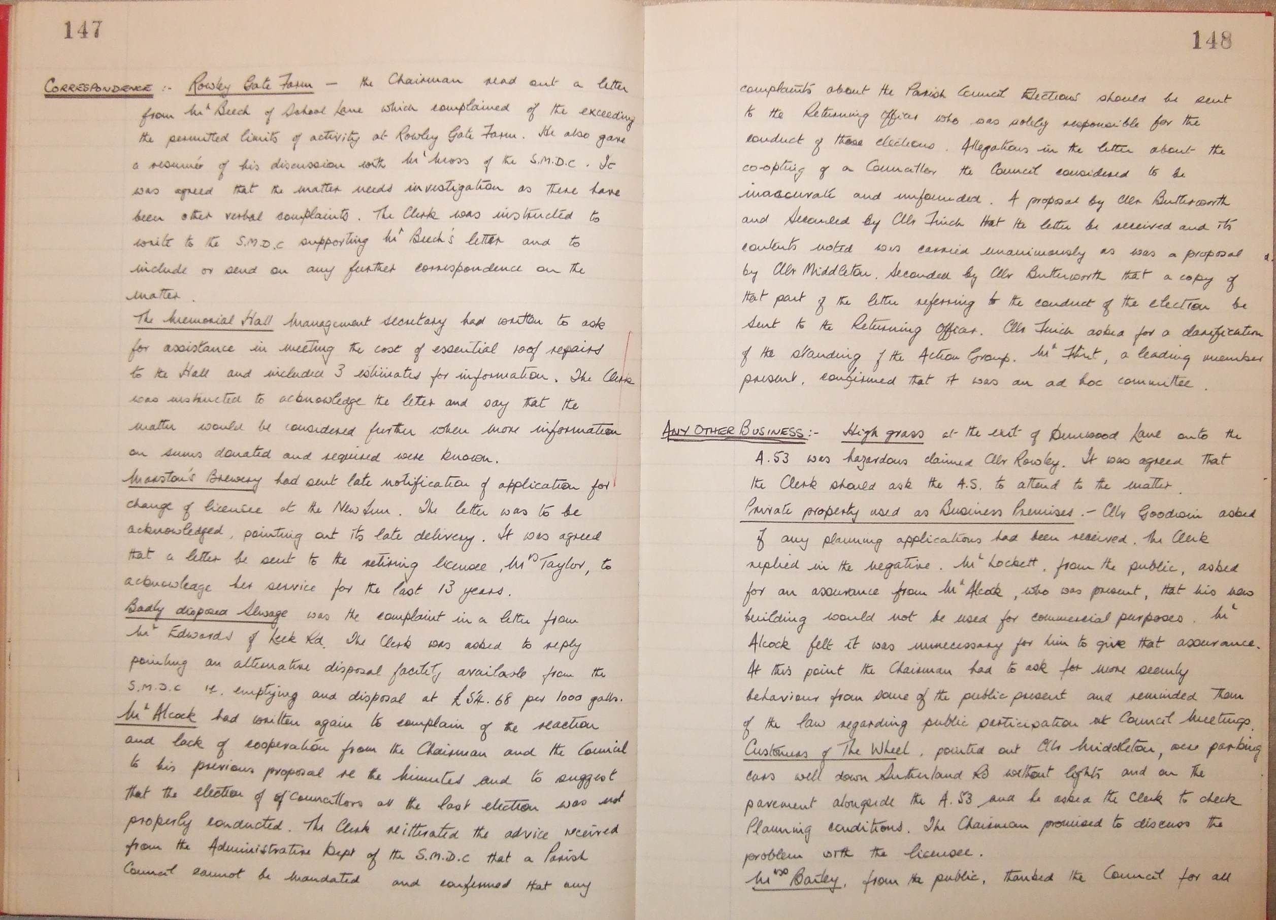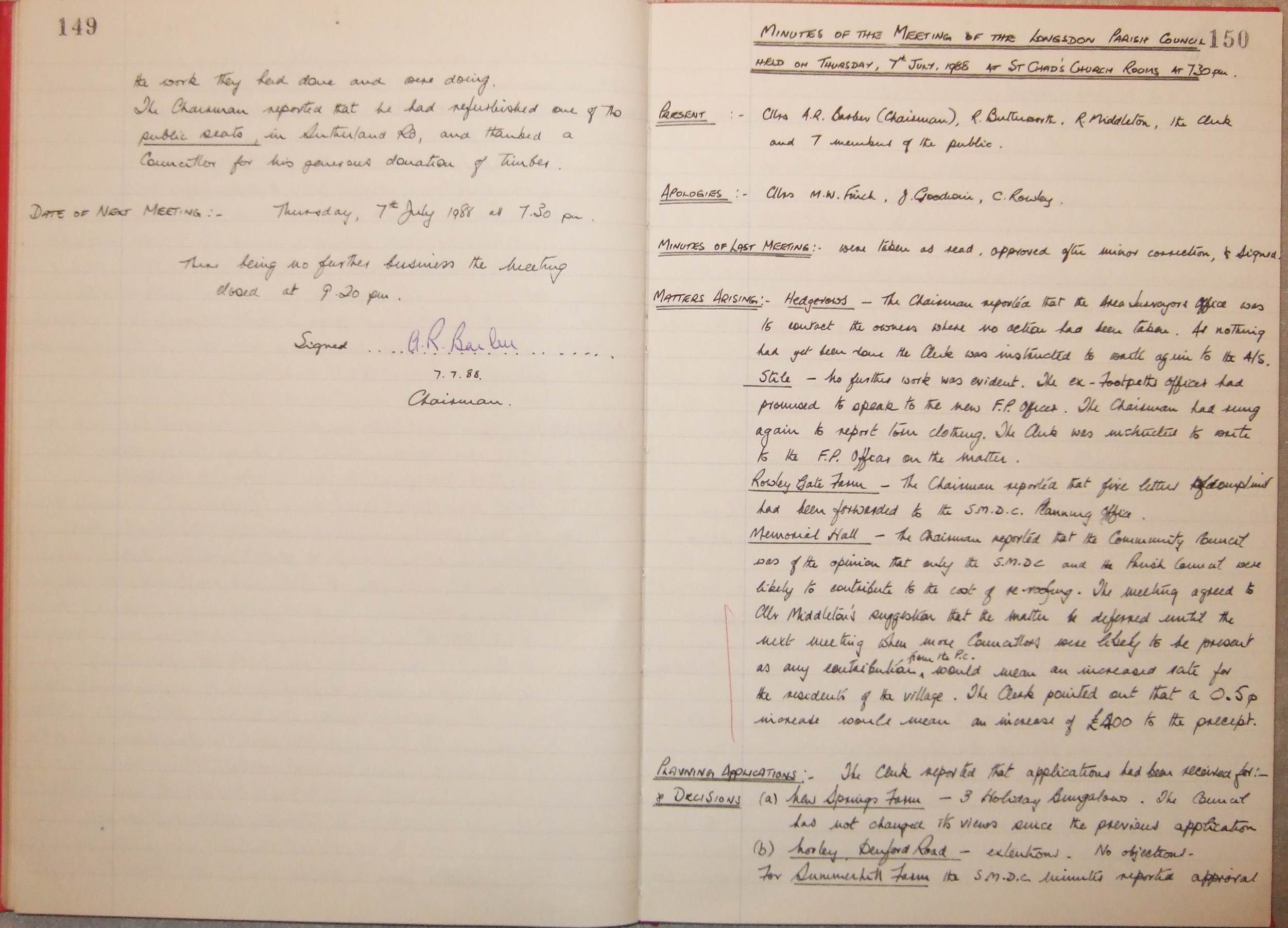 Photographs of pages from the Parish Council Minute book for meetings from 1988.