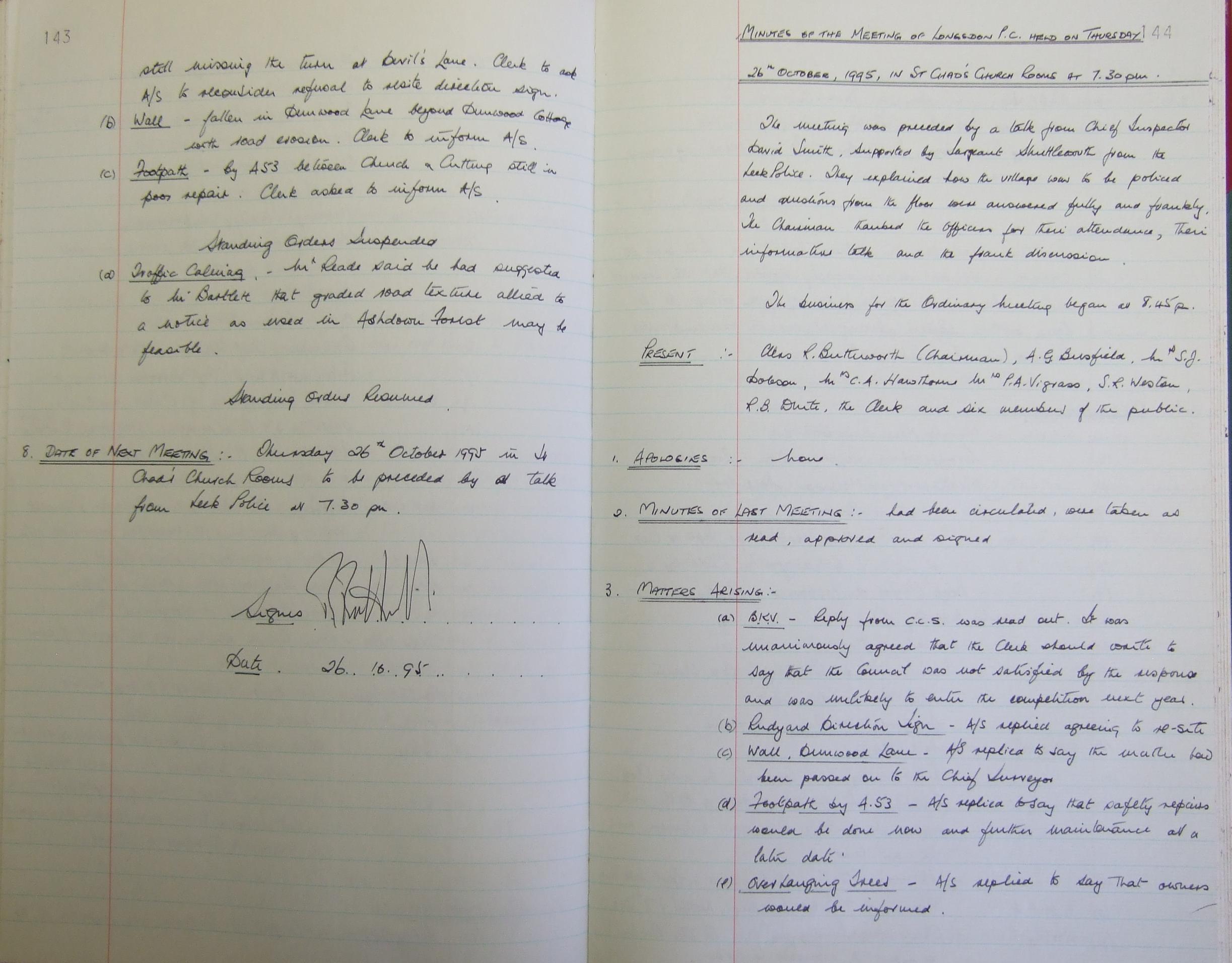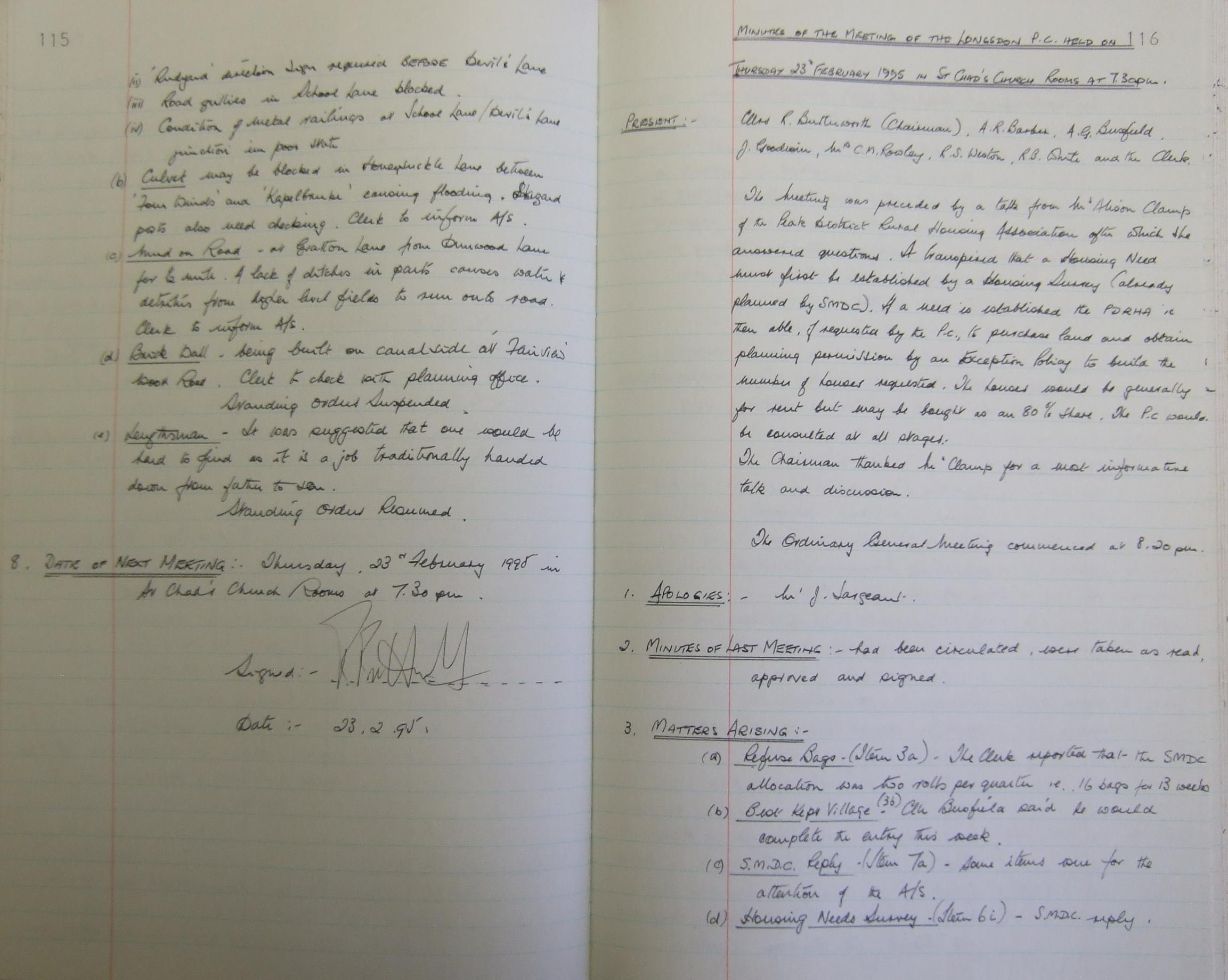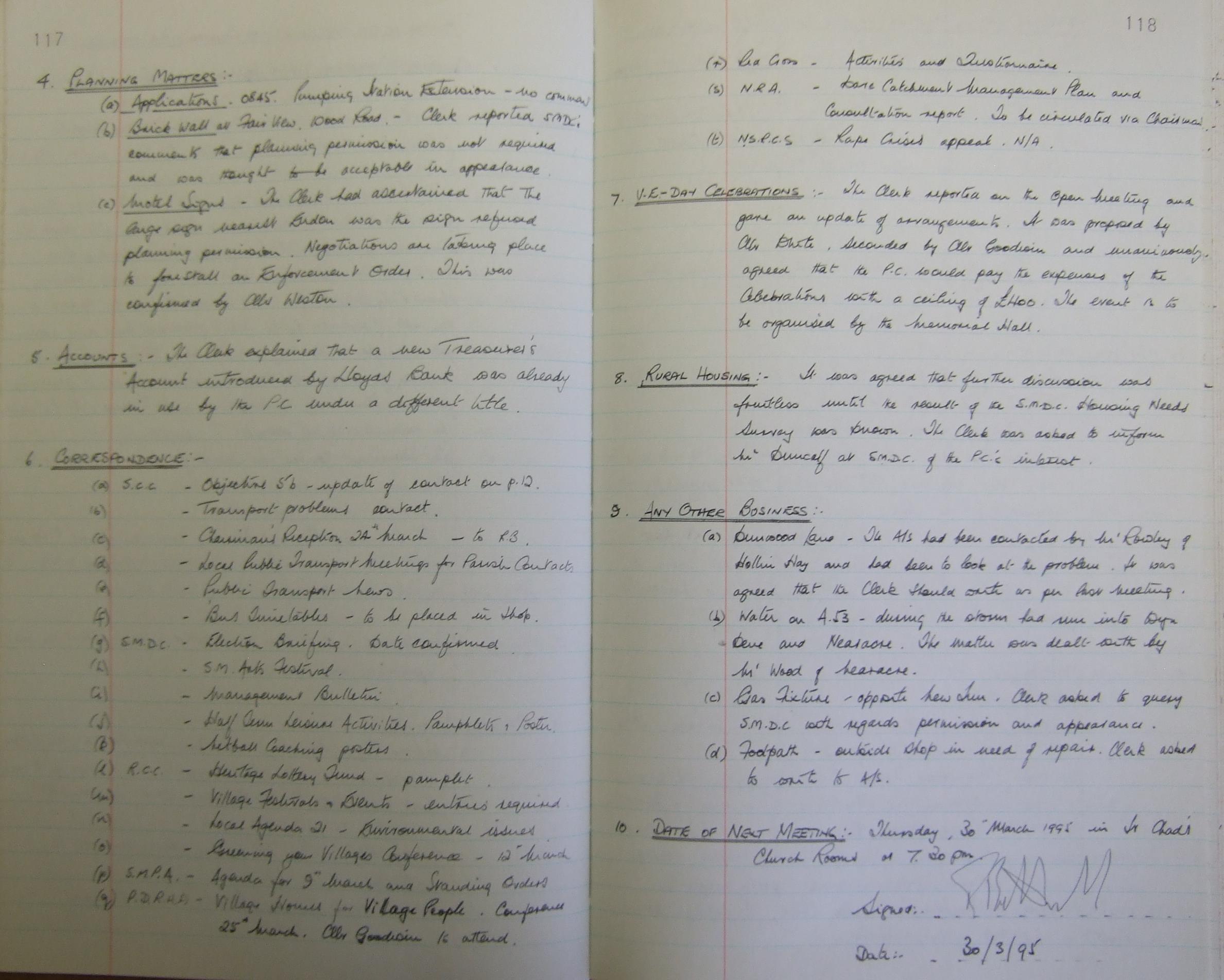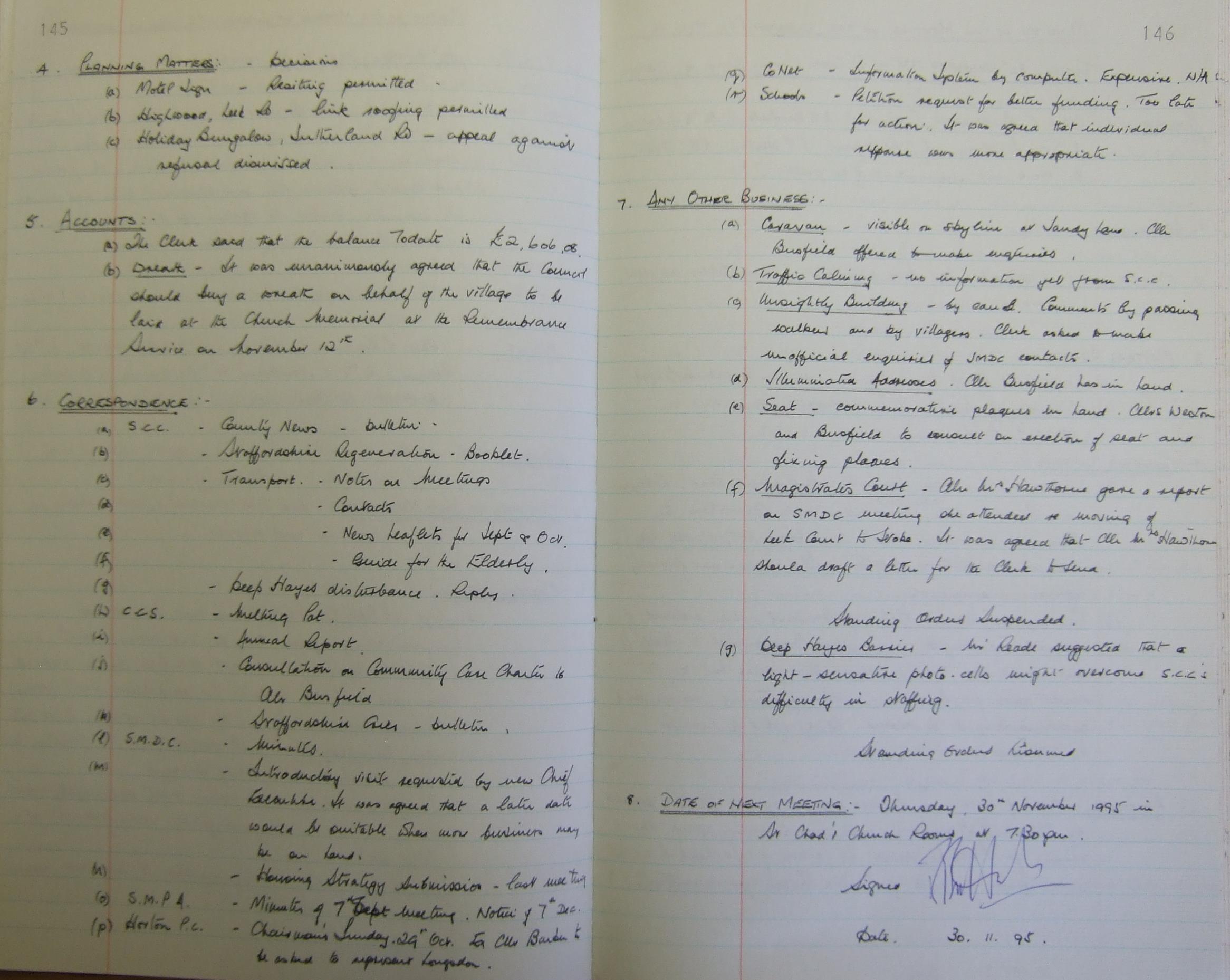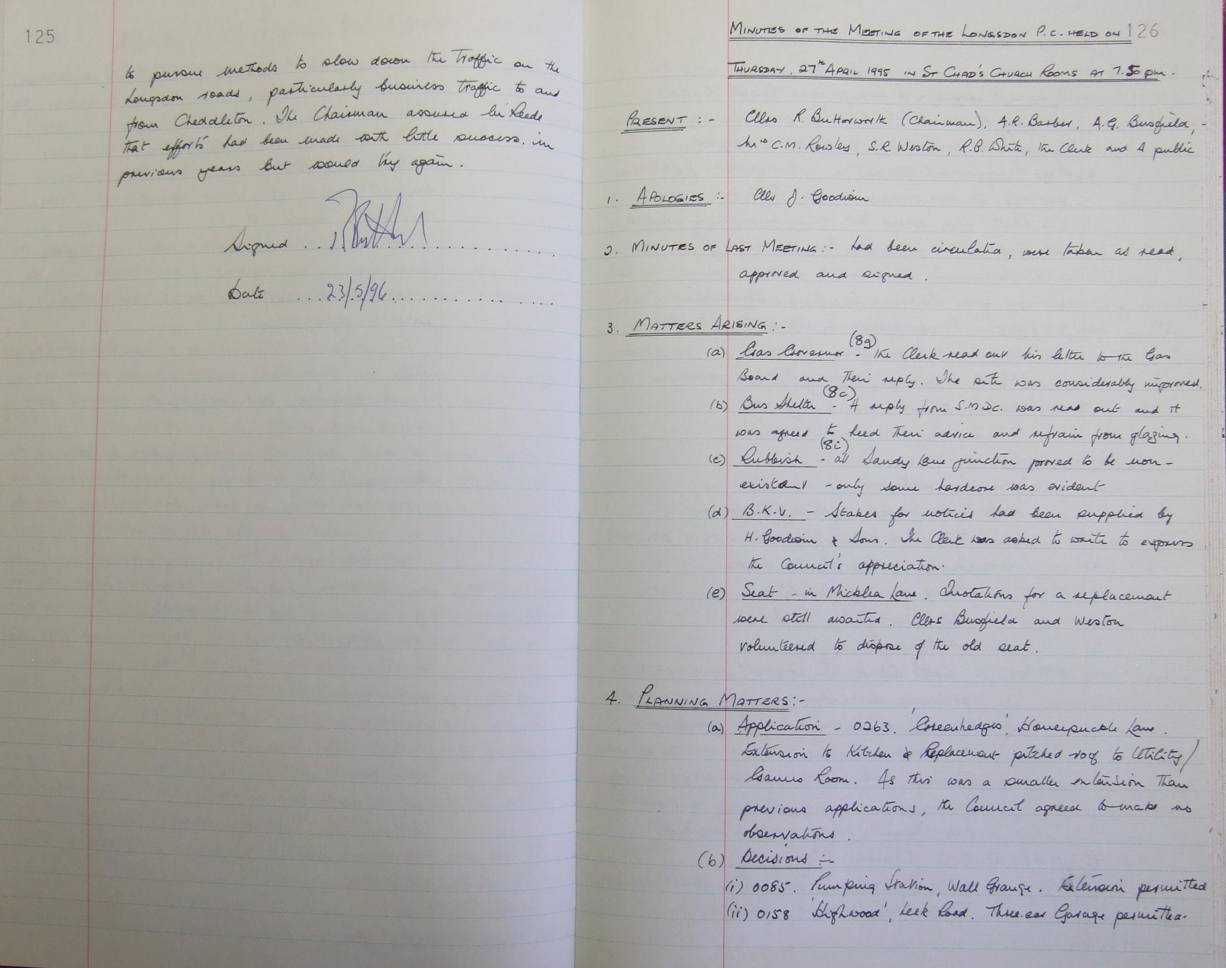 Photographs of pages from the Parish Council Minute book for meetings from 1995.