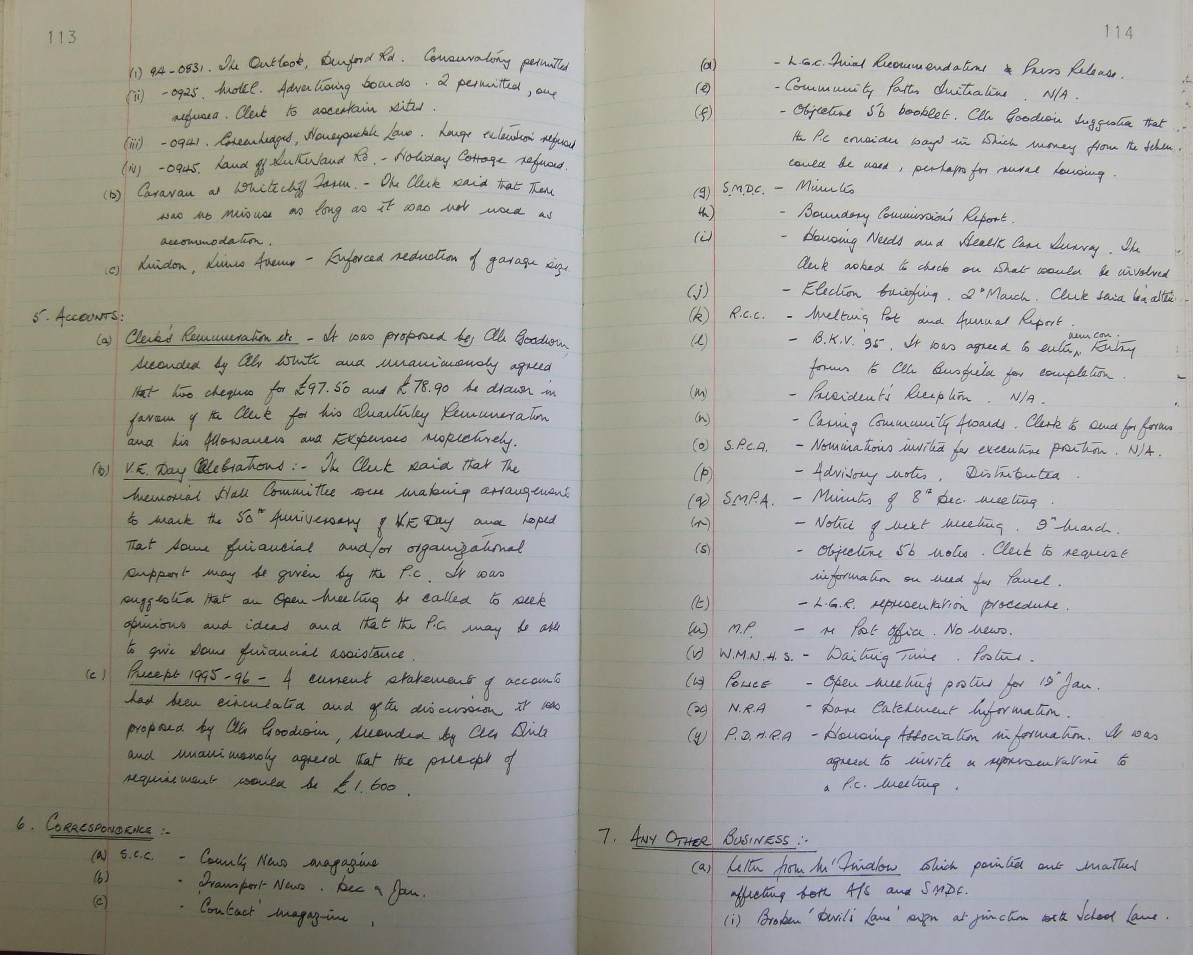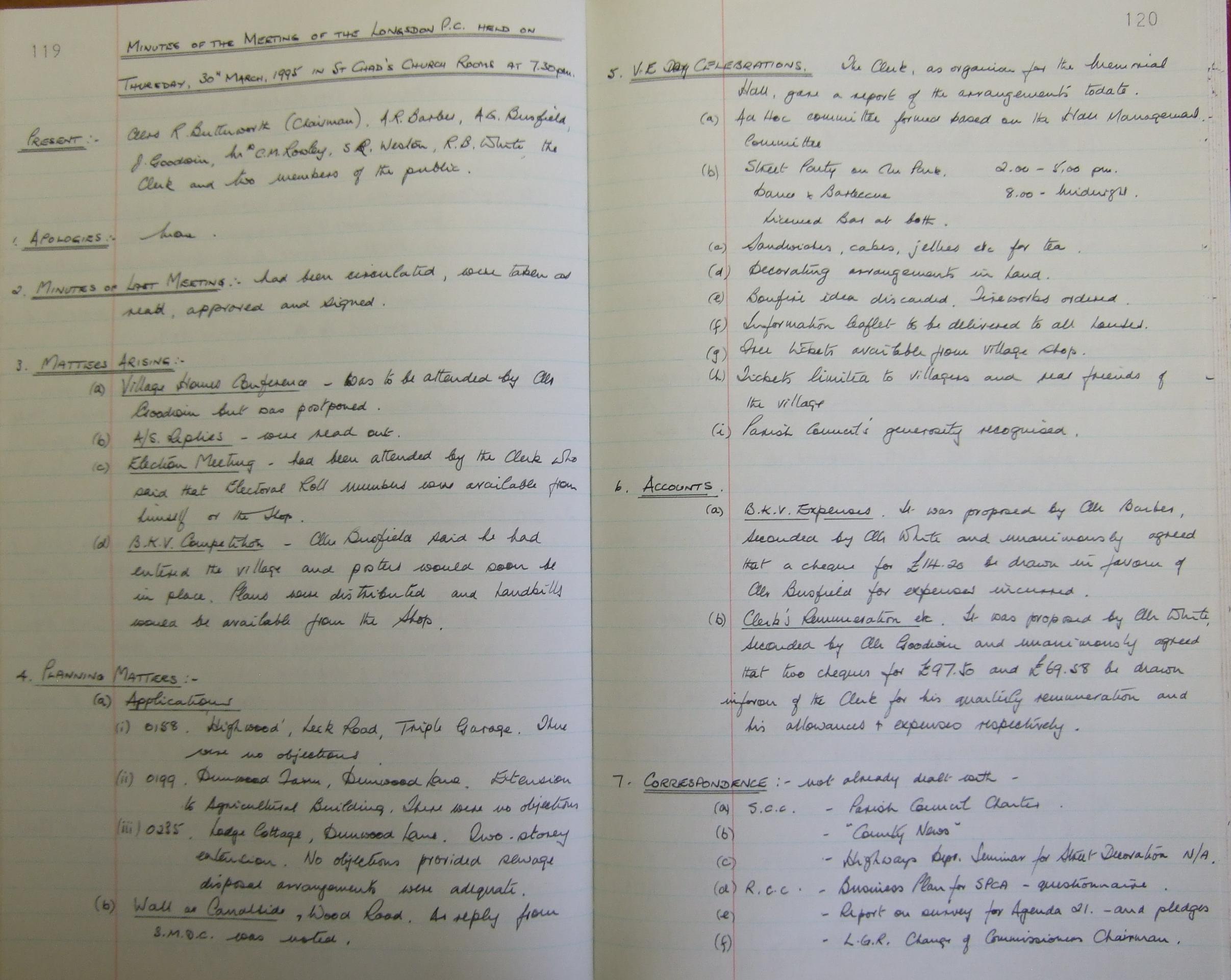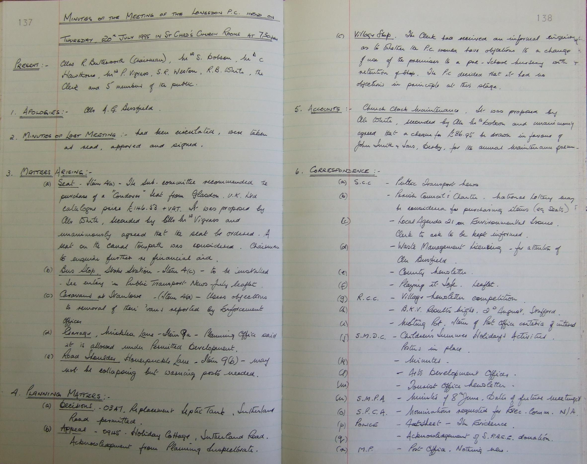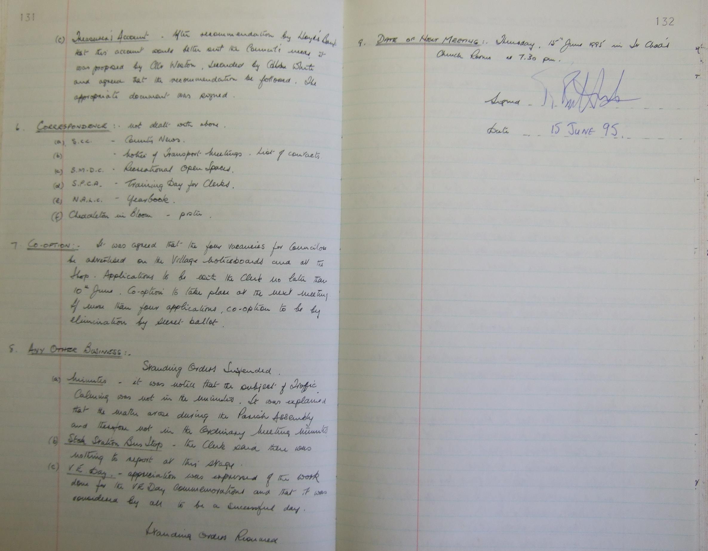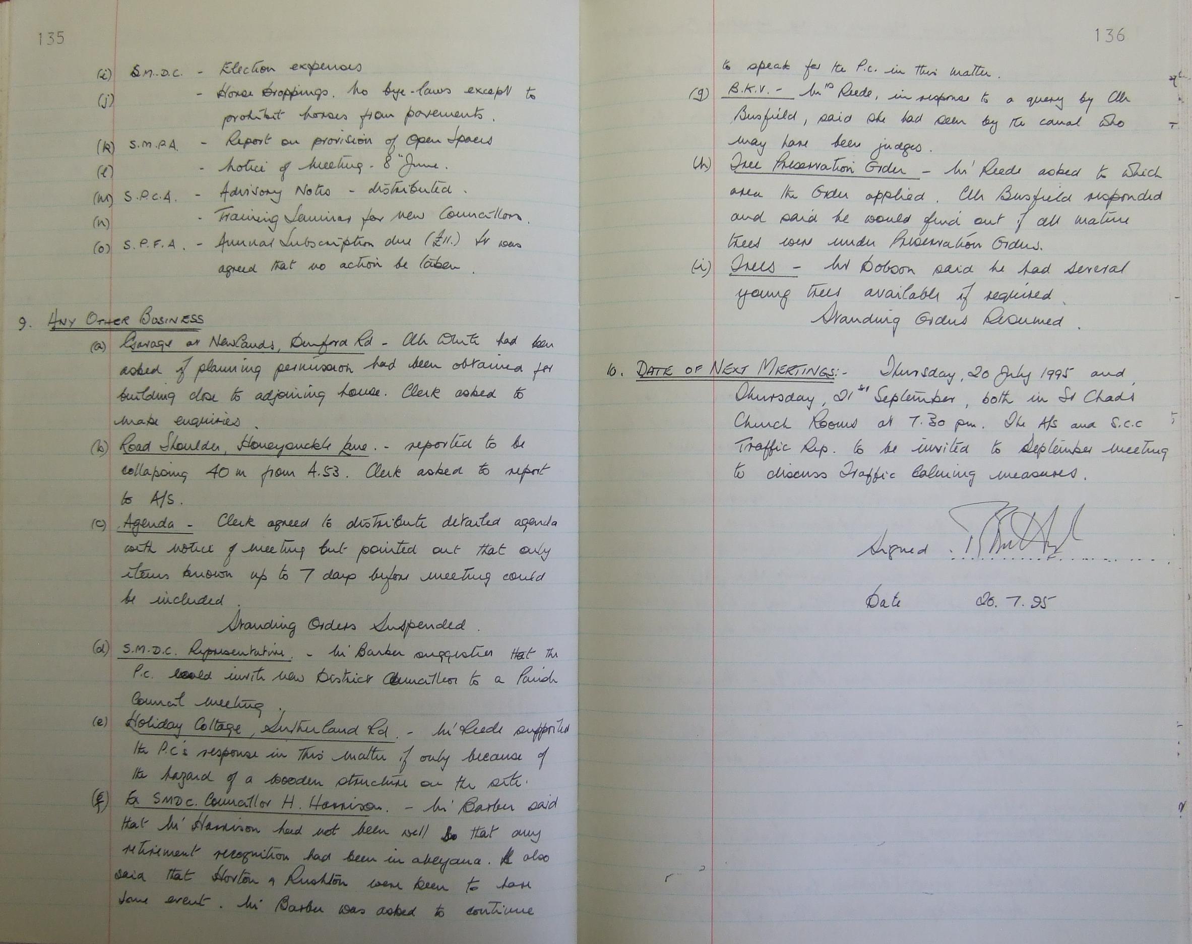 Photographs of pages from the Parish Council Minute book for meetings from 1995.