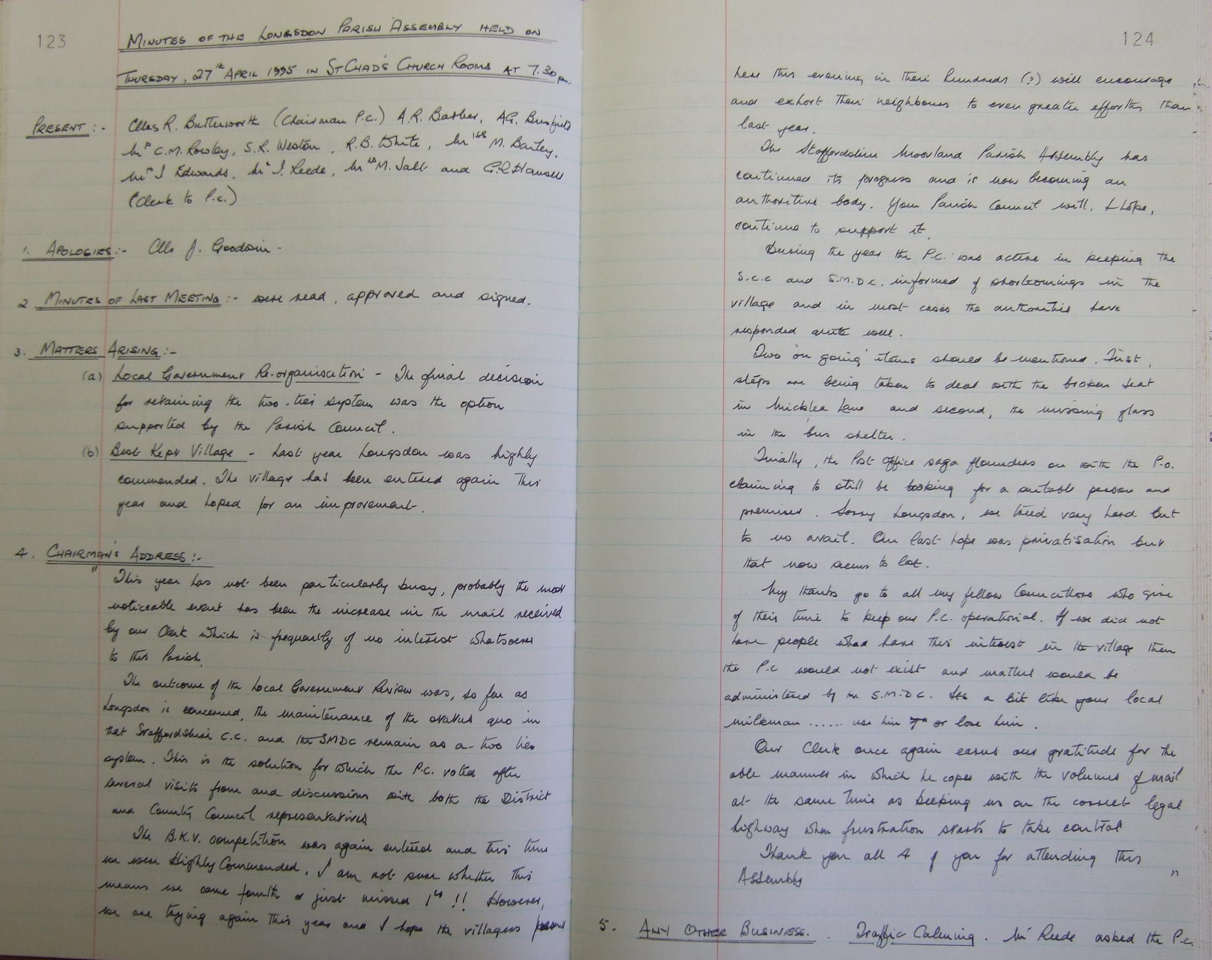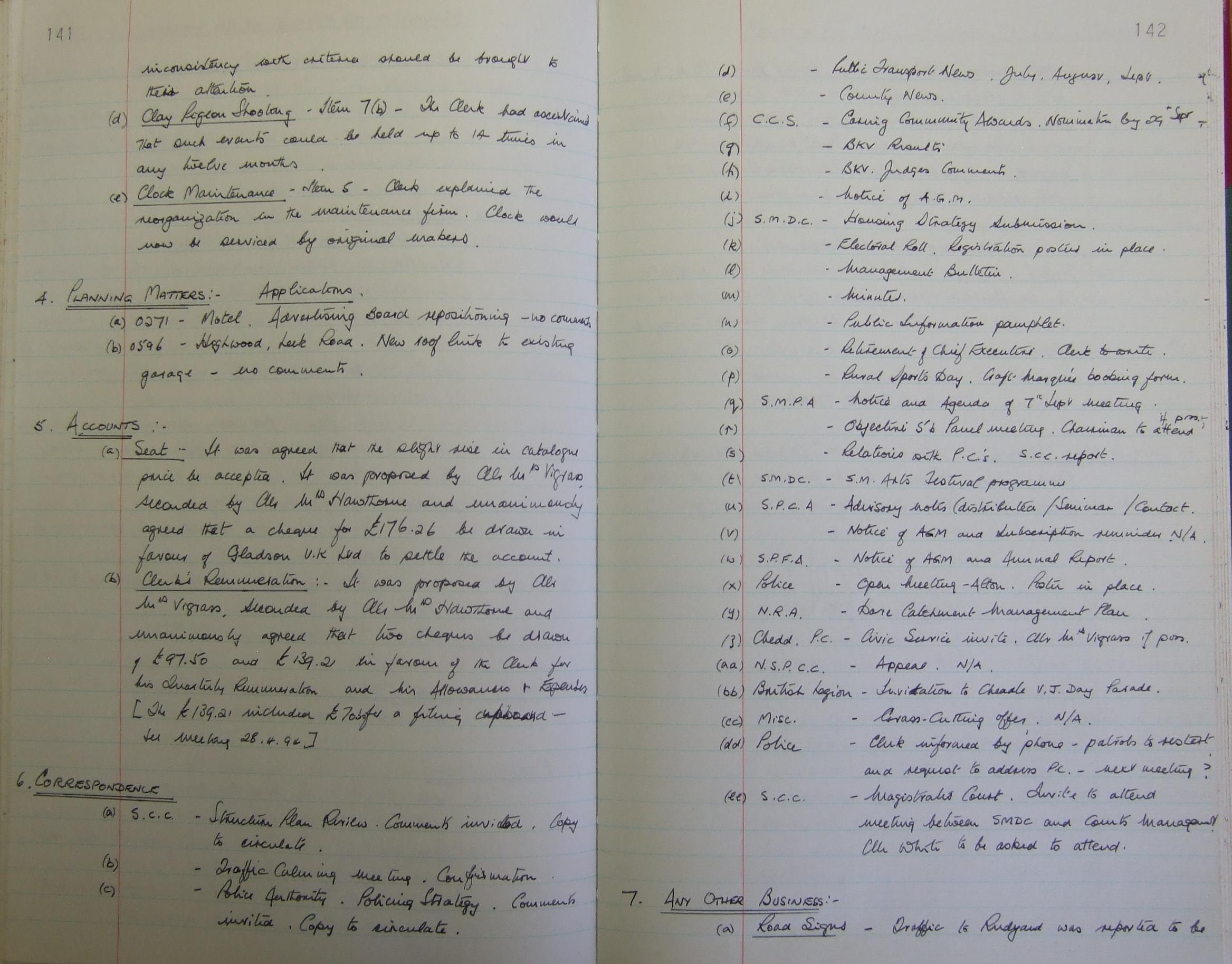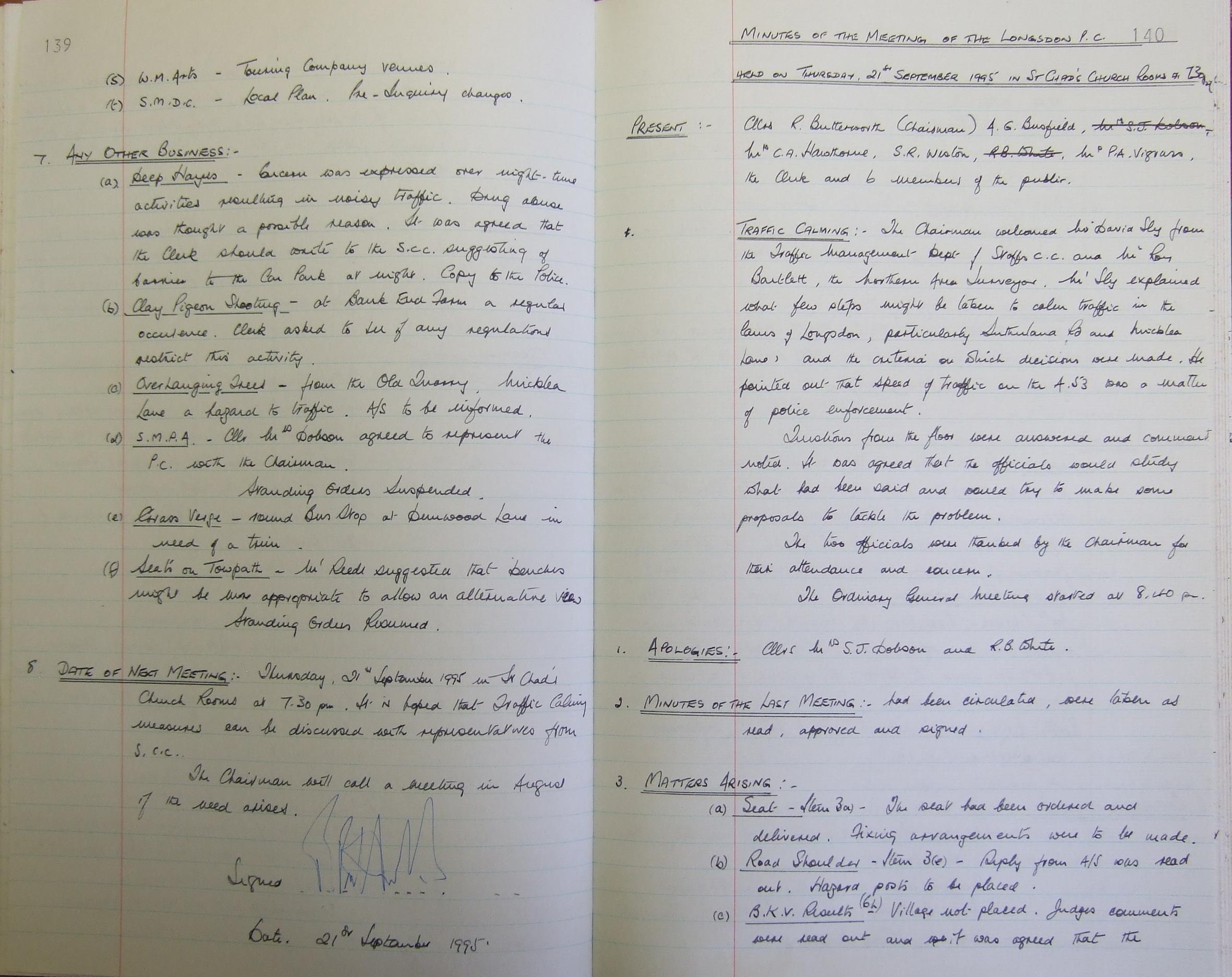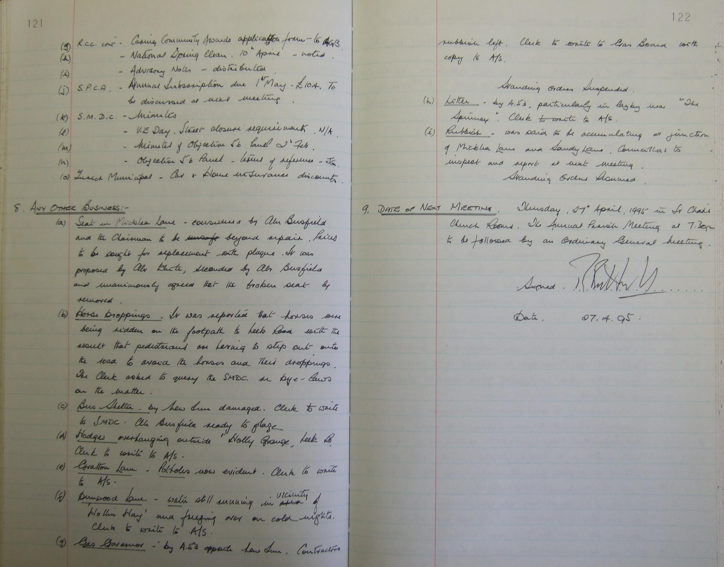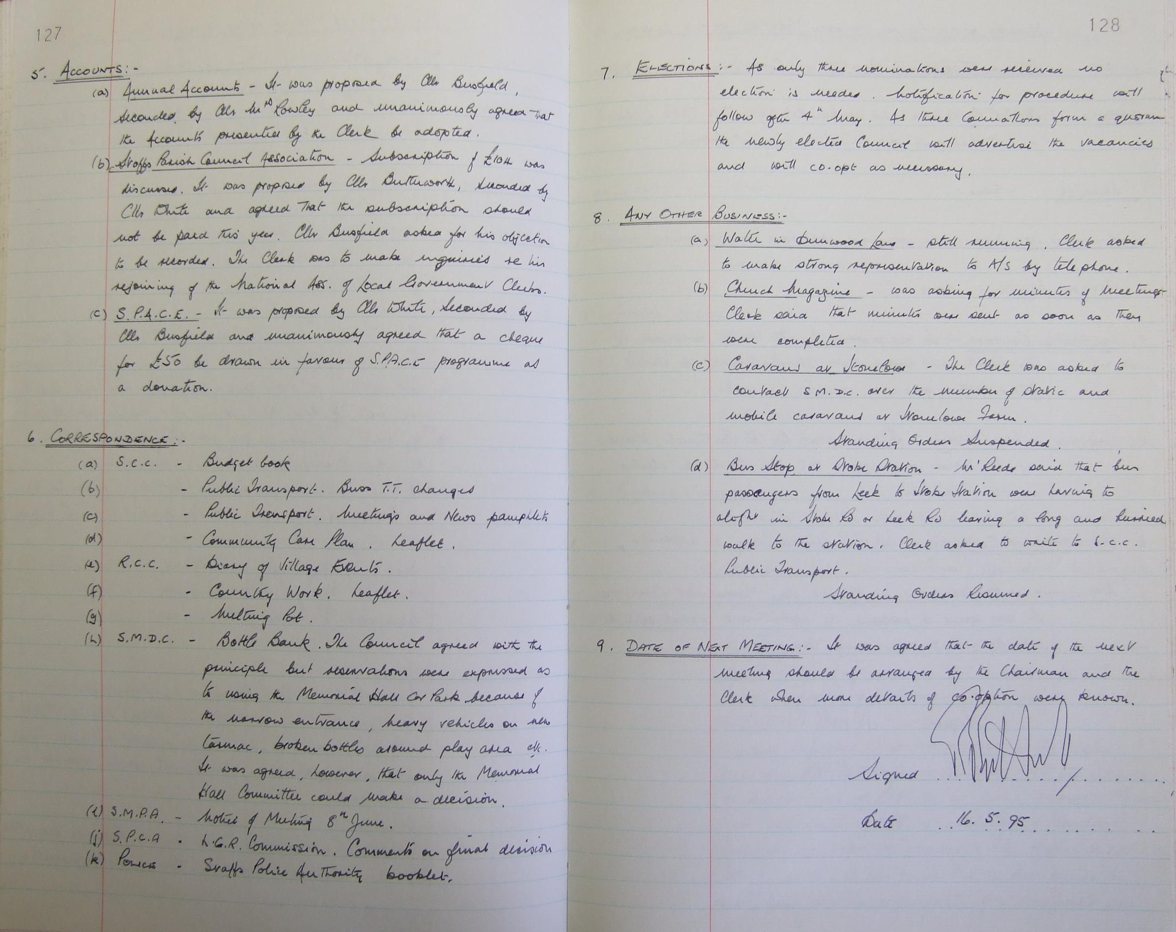 Photographs of pages from the Parish Council Minute book for meetings from 1995.