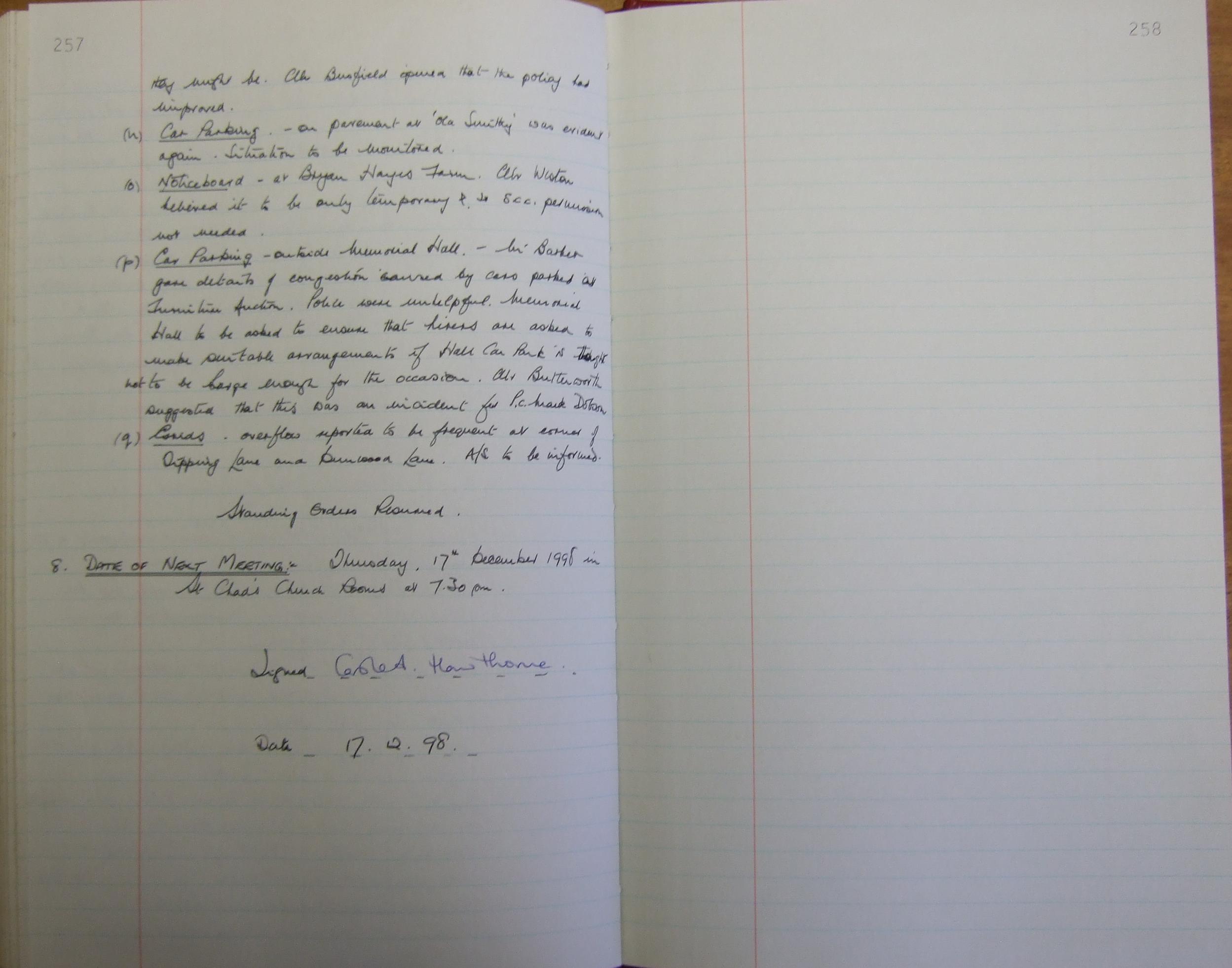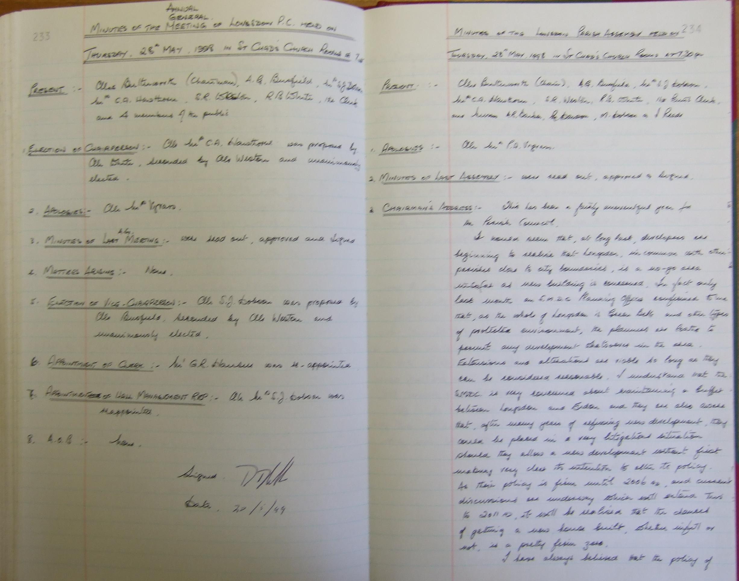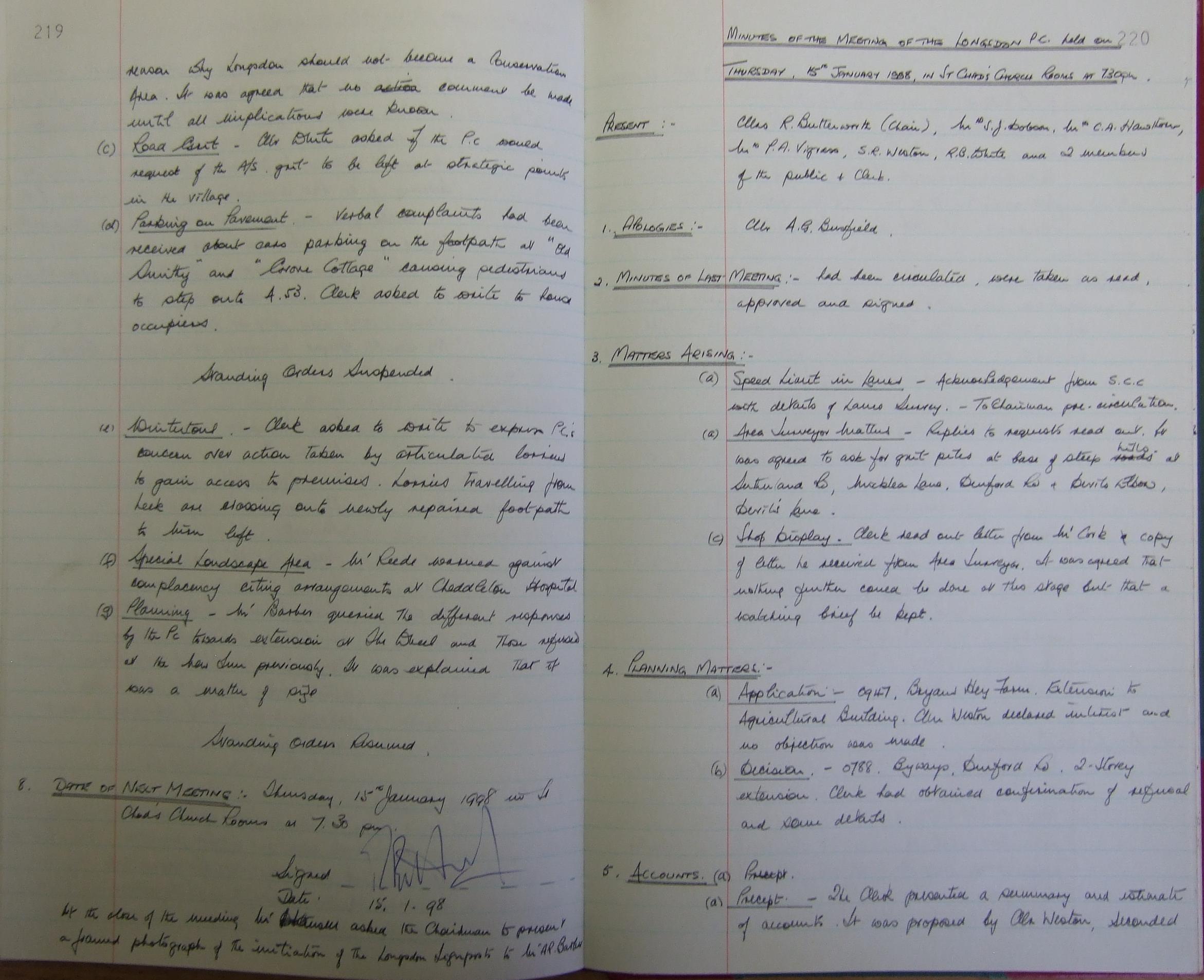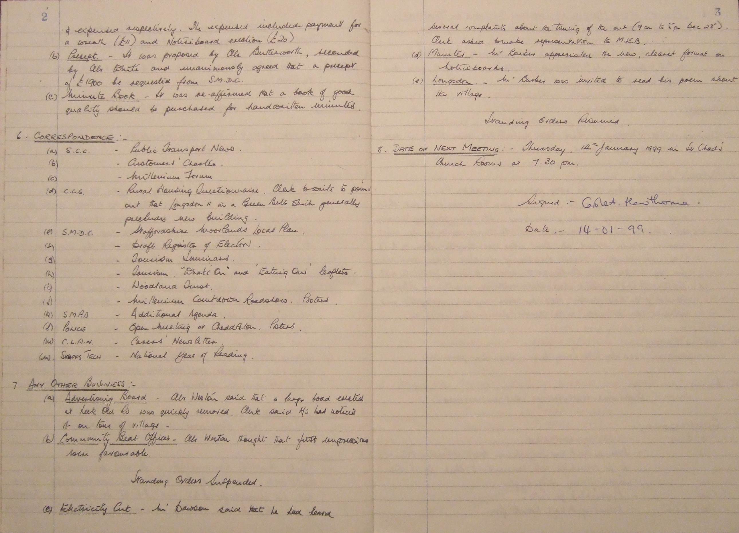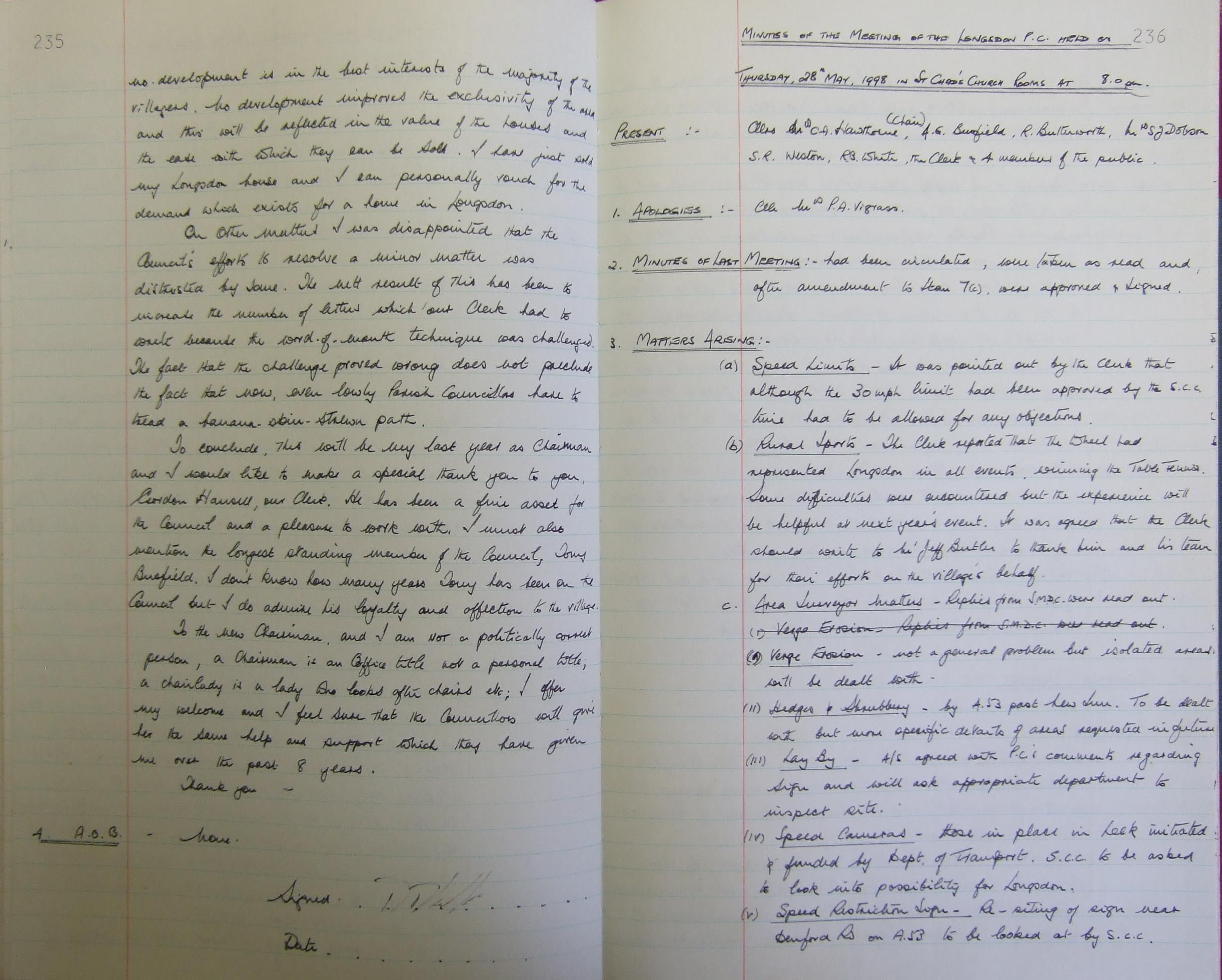 Photographs of pages from the Parish Council Minute book for meetings from 1998.