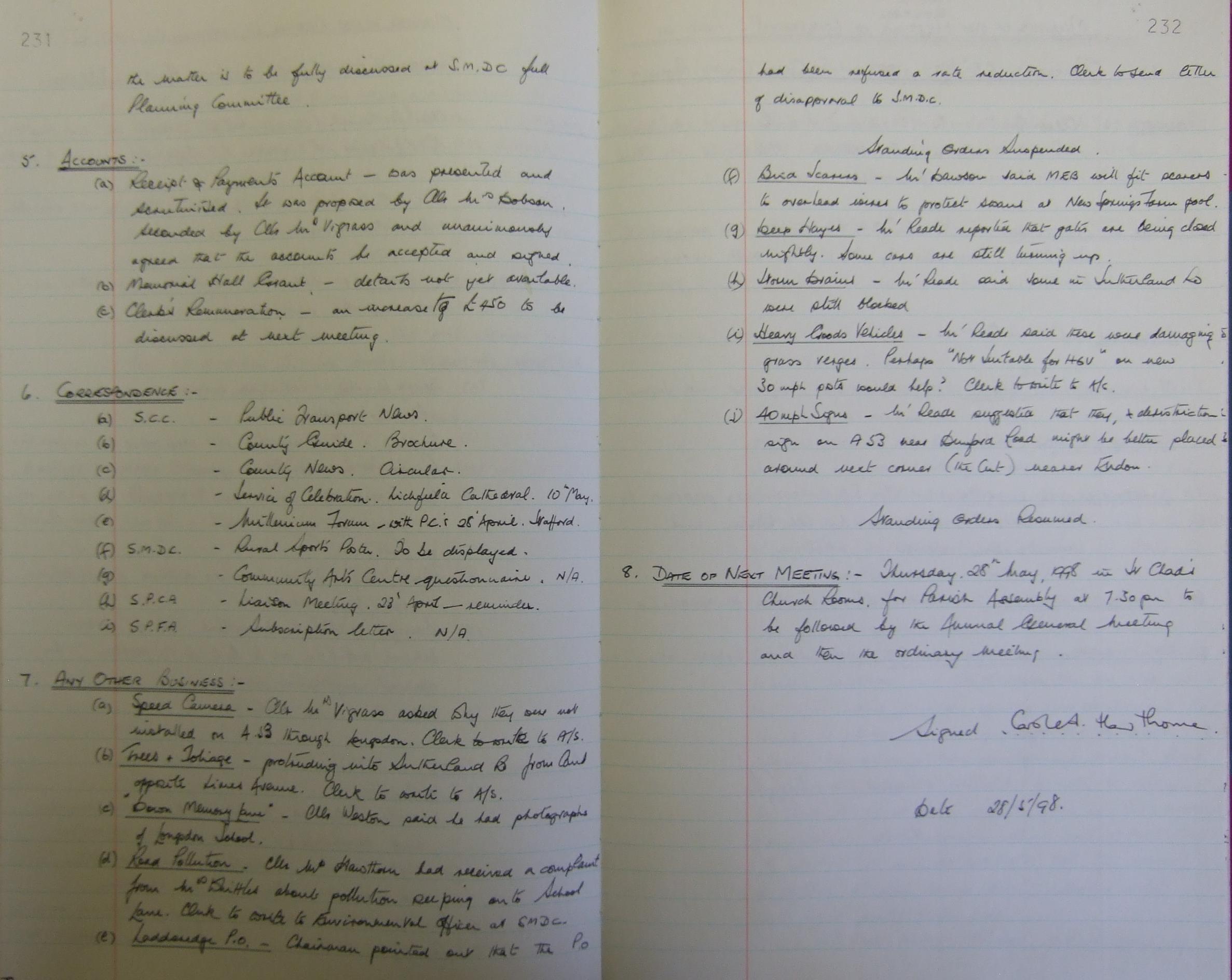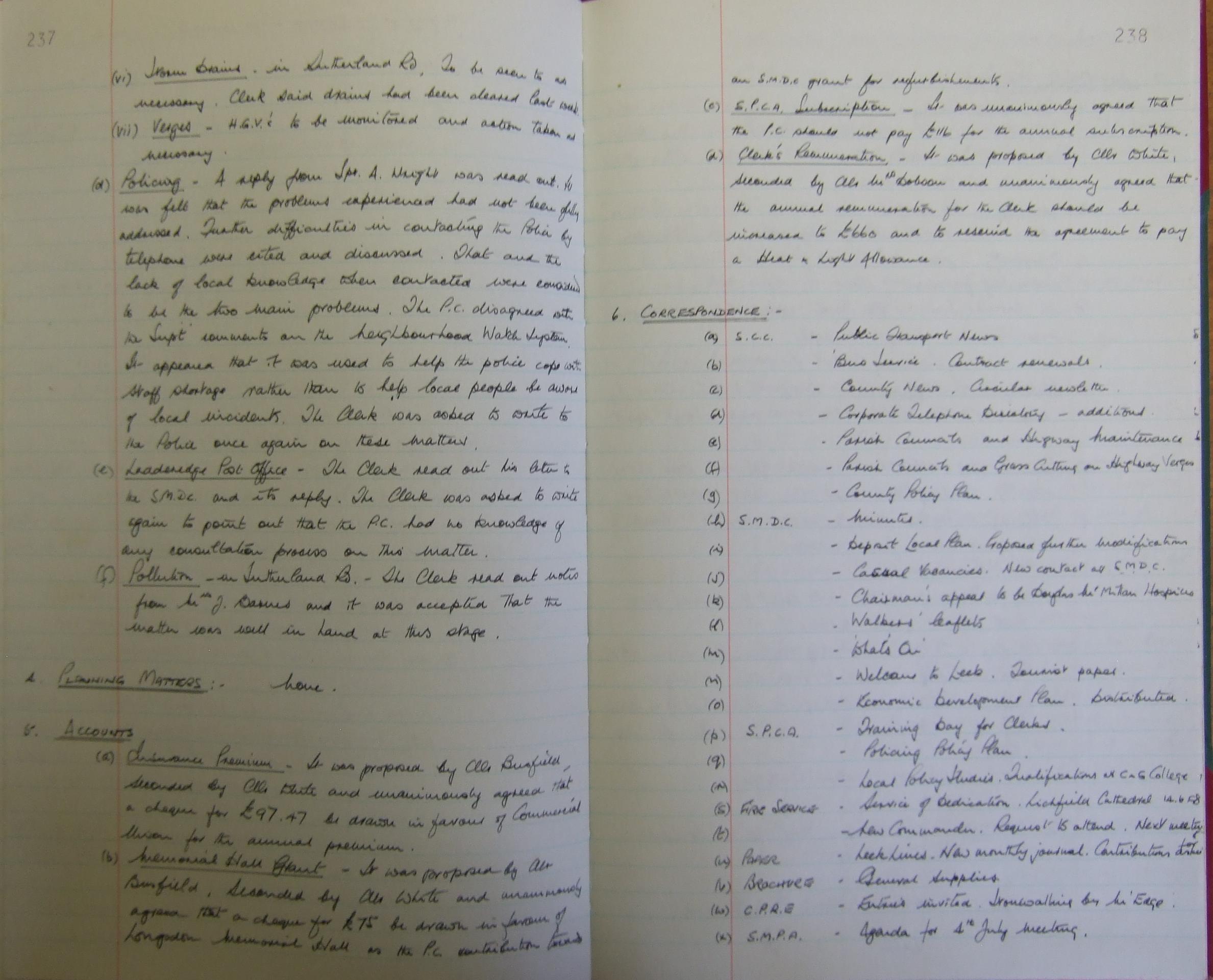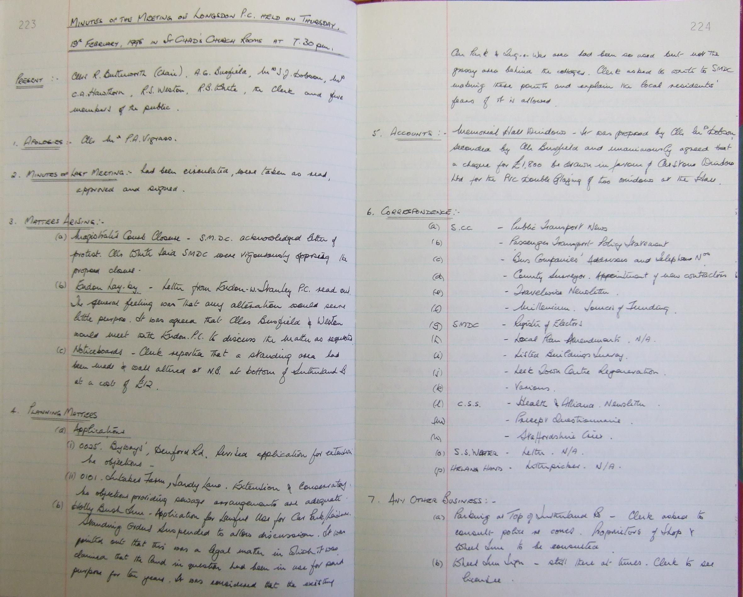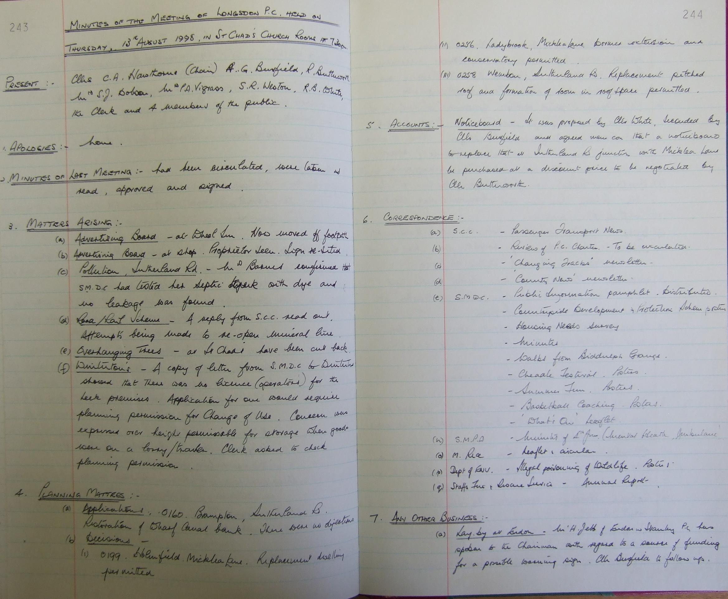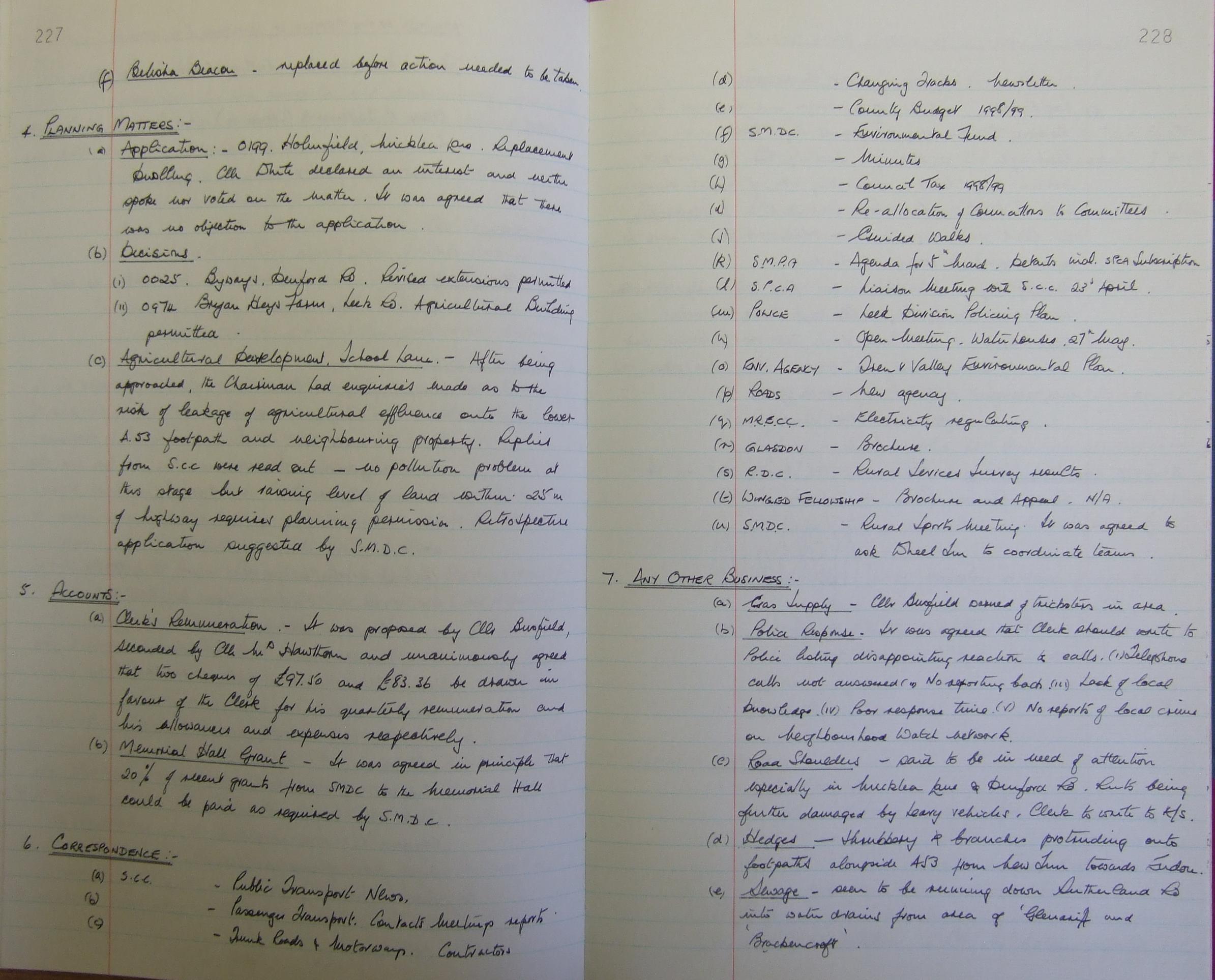 Photographs of pages from the Parish Council Minute book for meetings from 1998.